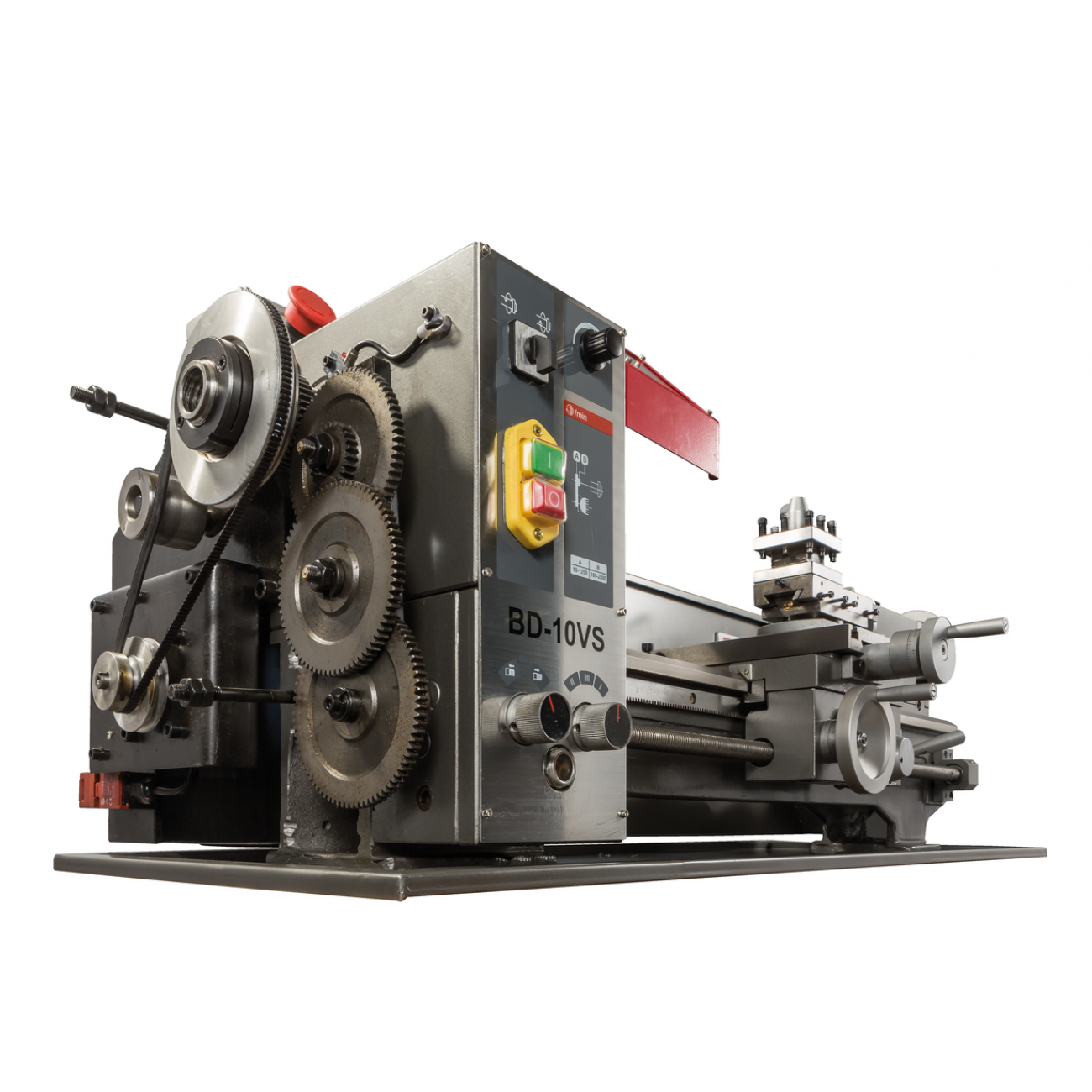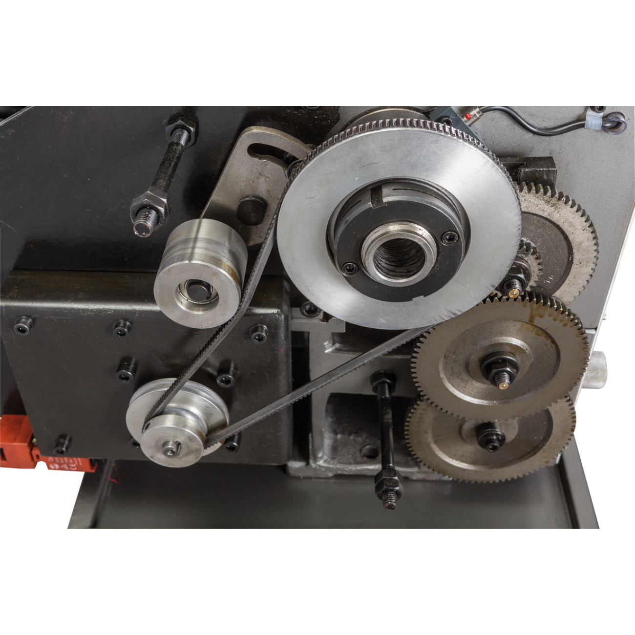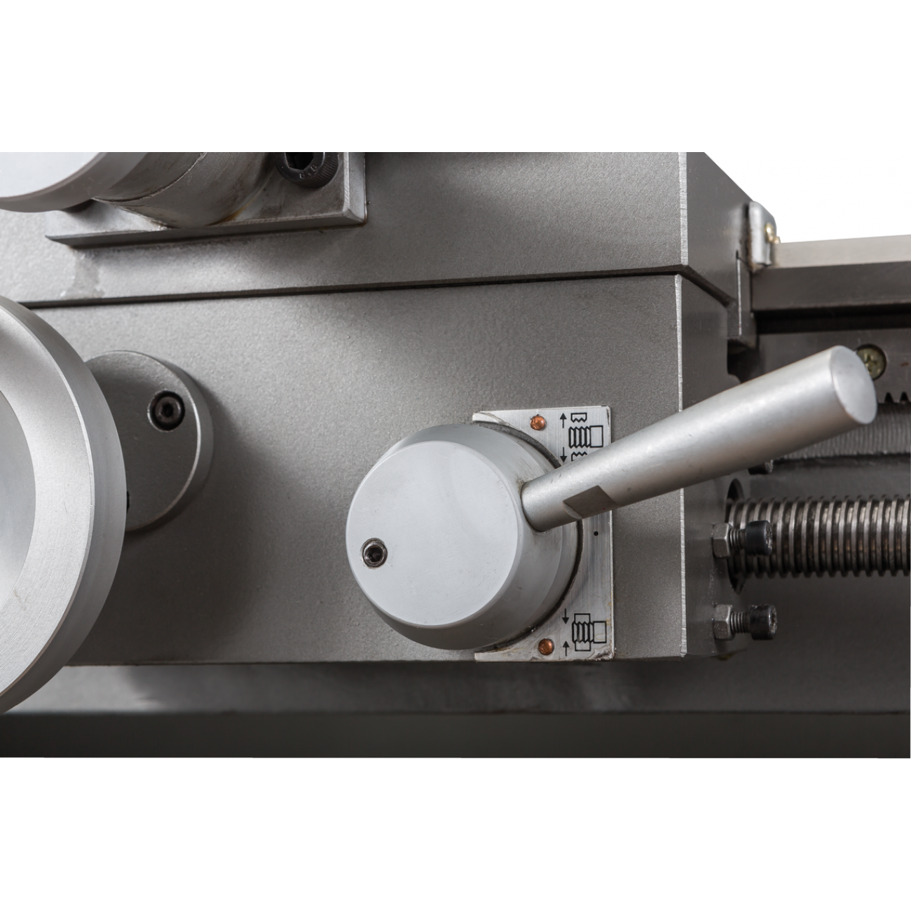Давайте розберемося які особливості має верстат JET BD-10VS. Верстат здатний нарізати як праве, так і ліве різьблення. Ріже він метричне та дюймове різьблення. Для нарізки різьблення використовуються змінні металеві шестерні, вони йдуть у комплекті зі верстатом. На верстаті встановлено коробку подач – це ще одна важлива особливість верстата. Після того, як Ви наберете потрібну Вам гітару з шестерень на різьблення або автоматичну подачу, у Вас з'явиться три швидкості або три можливі різьблення. Наприклад, набираючи автоматичну подачу 0,1 мм на один оберт шпинделя з одного комплекту шестерень ви отримуєте три автоматичні подачі: 0,1 мм/оборот, 0,2 і 0,4 мм на один оберт шпинделя. Таким чином на верстаті, маючи два набори шестерень, ми отримуємо шість автоматичних подач, причому перебирати їх щоразу не потрібно, ми просто повертаємо ручку на панелі верстата. Правда, це зручно?