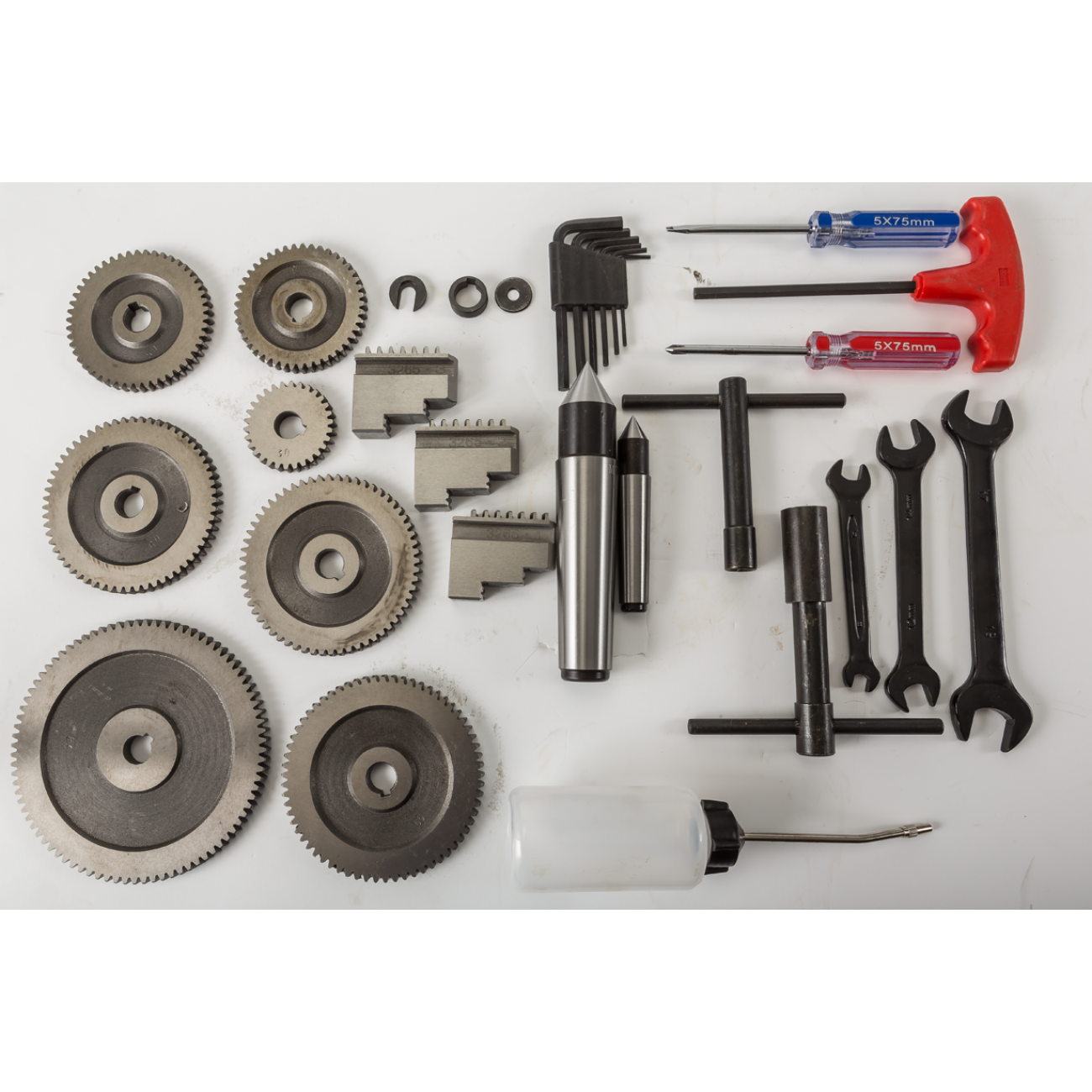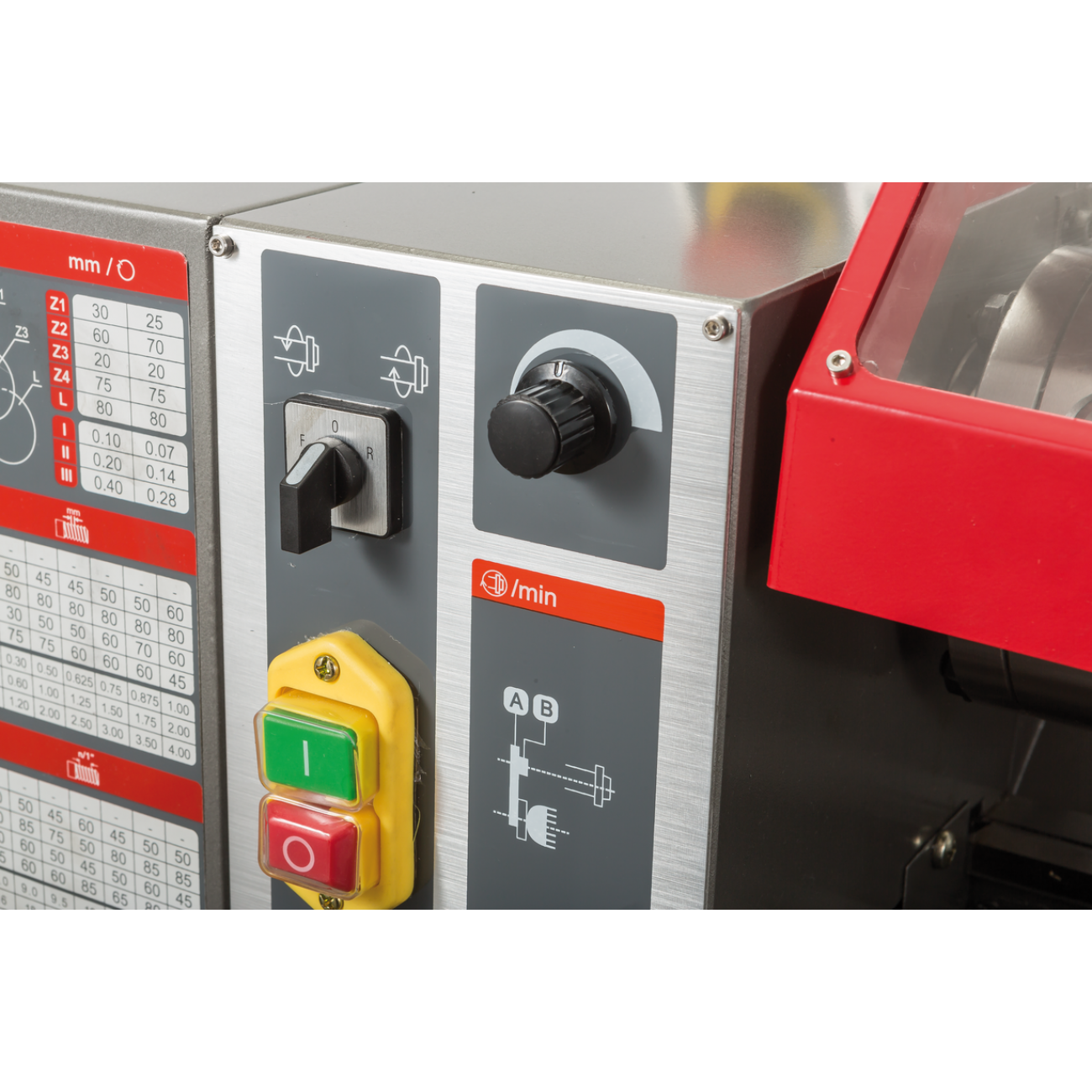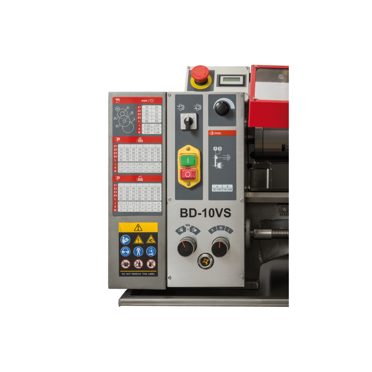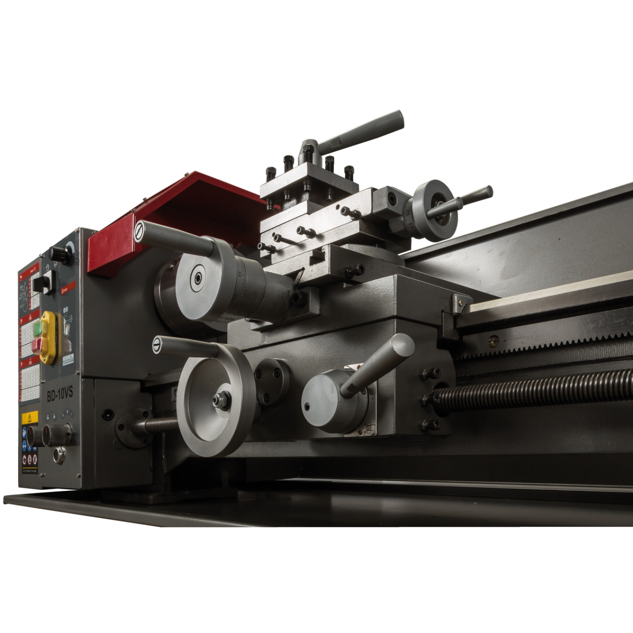Давайте розберемося які особливості має верстат JET BD-10VS. Верстат здатний нарізати як праве, так і ліве різьблення. Ріже він метричне та дюймове різьблення. Для нарізки різьблення використовуються змінні металеві шестерні, вони йдуть у комплекті зі верстатом. На верстаті встановлено коробку подач – це ще одна важлива особливість верстата. Після того, як Ви наберете потрібну Вам гітару з шестерень на різьблення або автоматичну подачу, у Вас з'явиться три швидкості або три можливі різьблення. Наприклад, набираючи автоматичну подачу 0,1 мм на один оберт шпинделя з одного комплекту шестерень ви отримуєте три автоматичні подачі: 0,1 мм/оборот, 0,2 і 0,4 мм на один оберт шпинделя. Таким чином на верстаті, маючи два набори шестерень, ми отримуємо шість автоматичних подач, причому перебирати їх щоразу не потрібно, ми просто повертаємо ручку на панелі верстата. Правда, це зручно?
