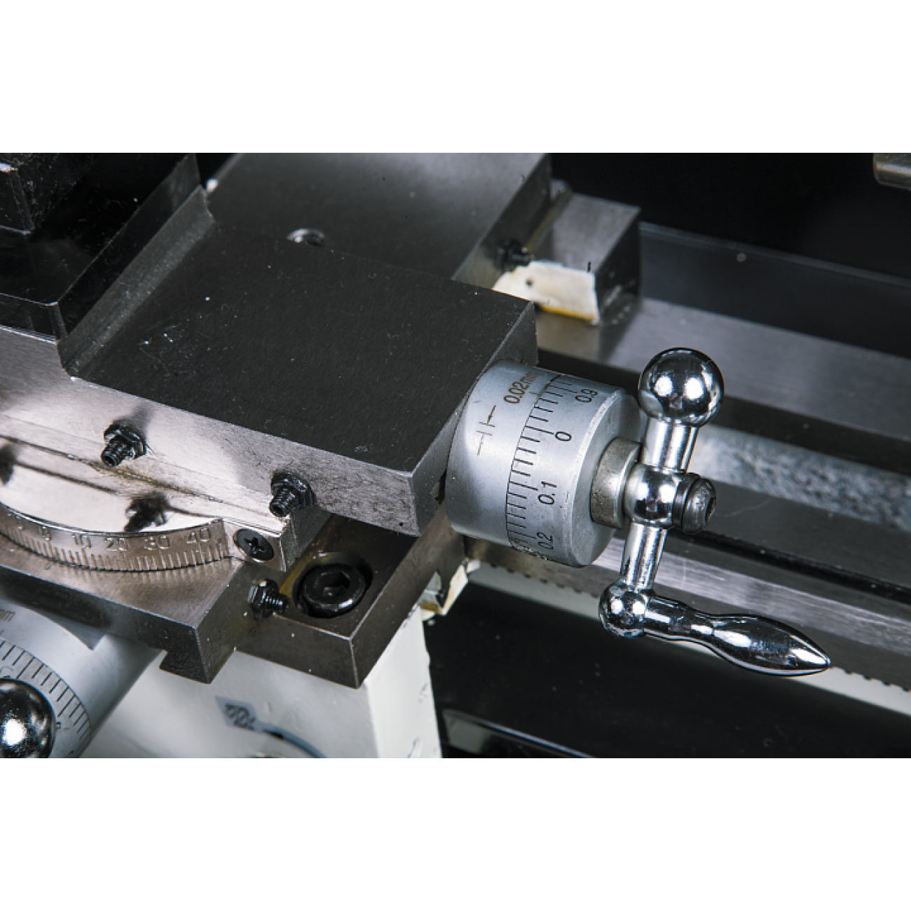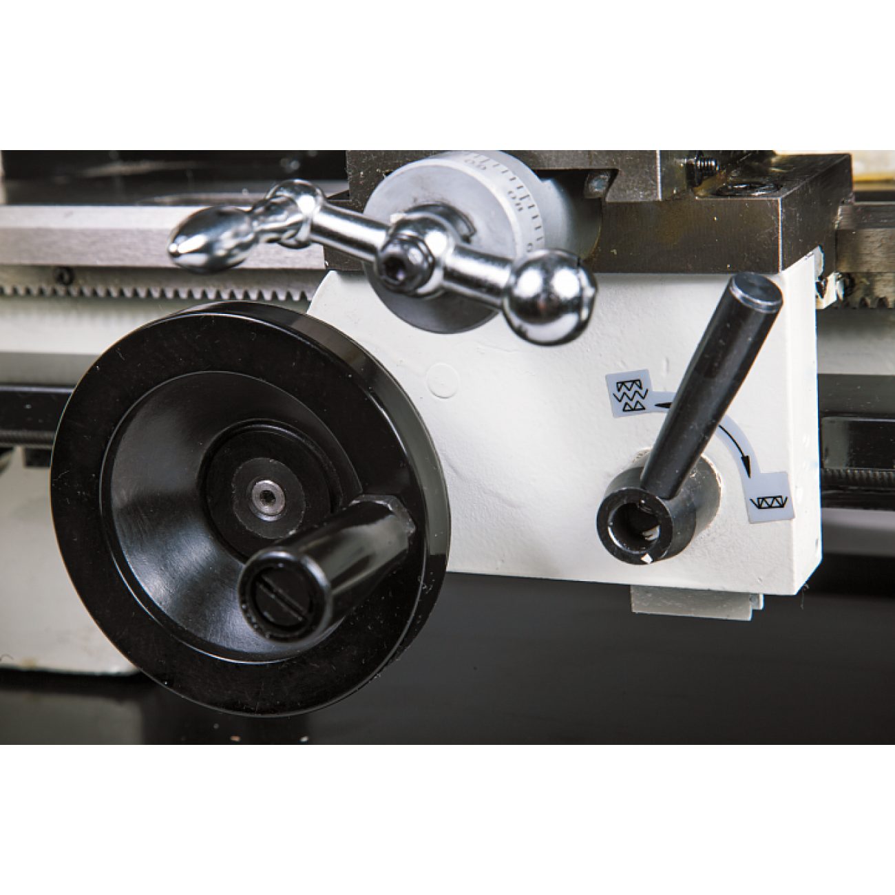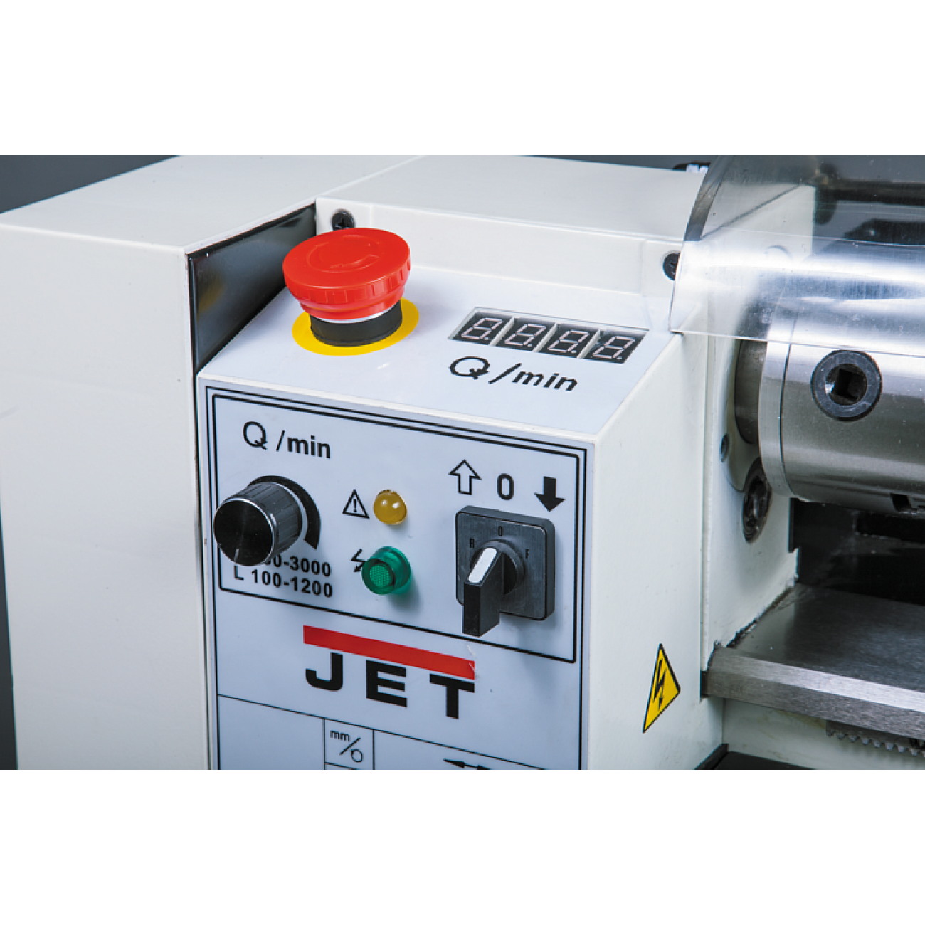 Верстат впорається з обробкою заготовки діаметром до 180 мм над станиною та 110 мм над супортом, відстань між центрами становить 350 мм. До цієї моделі верстата не доведеться докуповувати індикатор частоти обертання шпинделя, індикатор вже змонтований у кришку передньої бабки. Щоб знизити вартість BD-7 і знизити шум при роботі, інженери JET застосували оригінальне технічне рішення: шестерні верстата виконані з так званої «пластикової сталі». Цей матеріал називається POM, він не поступається сталі за міцністю, але значно дешевше і більш невибагливий в експлуатації.