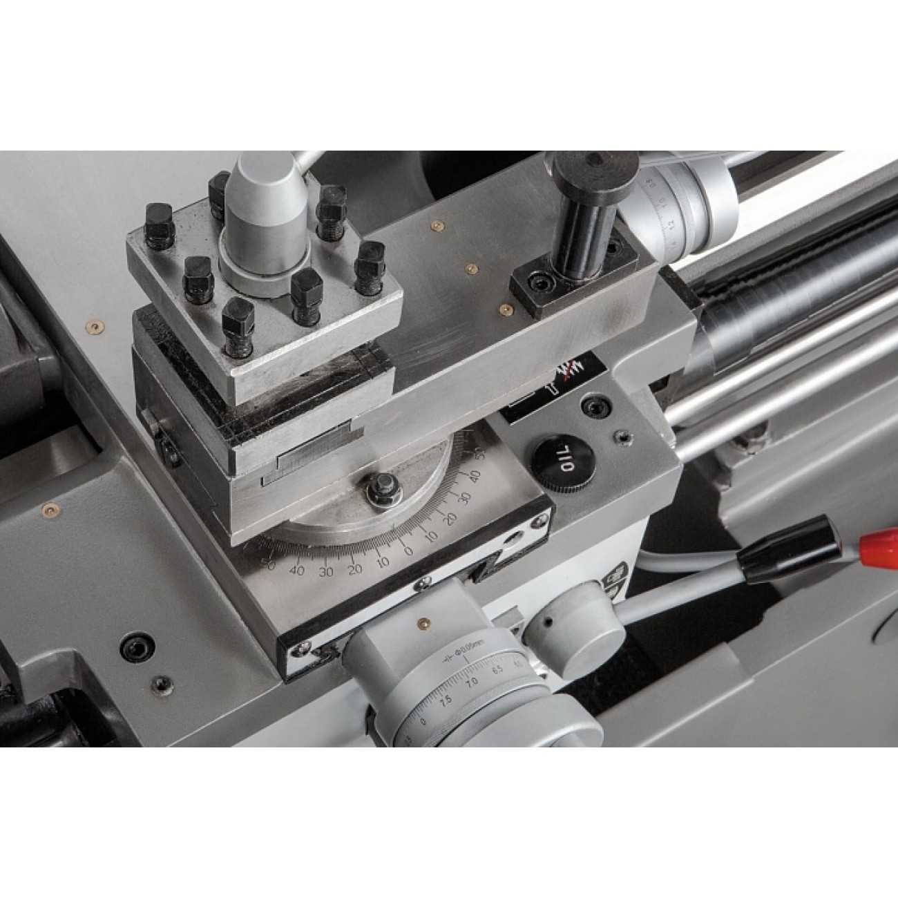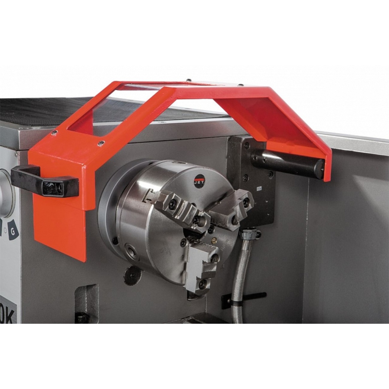 Багатофункціональний токарно-гвинторізний верстат JET GH-1440K на чавунній основі розрахований на експлуатацію промисловими підприємствами та великими майстернями - там, де потрібна особлива якість та швидкість обробки. Потужний асинхронний двигун на 2,25 кВт здатний забезпечувати працездатність верстата протягом усього робочого дня. Верстат повністю відповідає за ГОСТ 18097 класу точності "Н" - биття шпинделя не перевищує 0,010 мм. На верстаті можна обточувати деталі діаметром до 356 мм над станиною, до 508 мм зі знятим містком gap (довжина містка 237 мм) та до 210 мм над супортом.