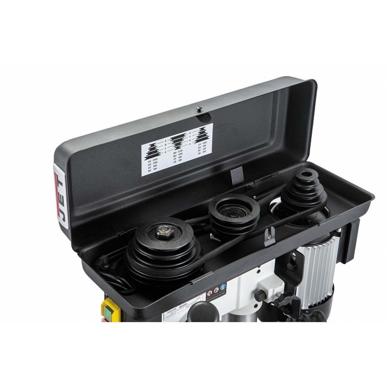 - 12-ступенчатая регулировка скорости вращения шпинделя переустановкой ремня