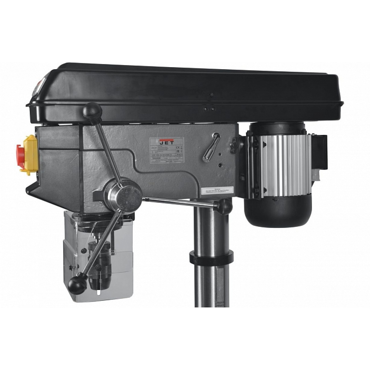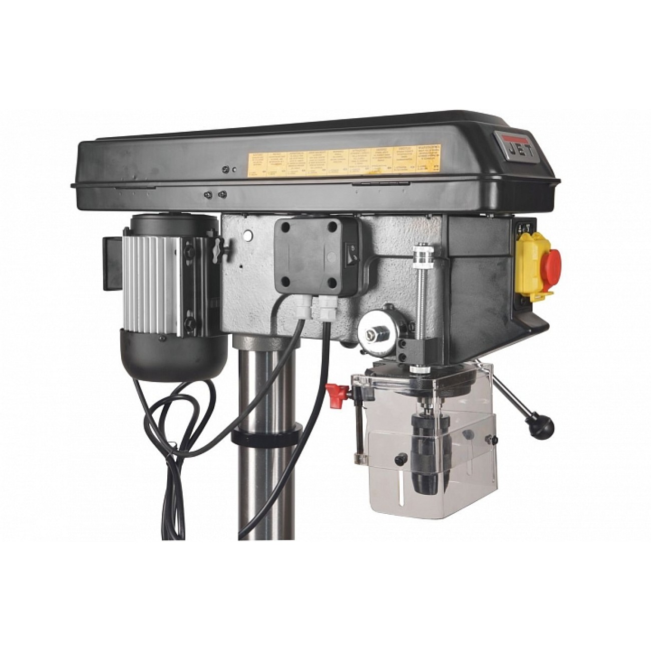 Jet JDP-17FM - професійний свердлильний верстат для розміщення підлоги. Великий діапазон регулювання вертикального просвіту за рахунок підйому/опускання столу дозволяє використовувати його для роботи з великогабаритними заготовками, такими як готове складання виробів з металу або дерева.