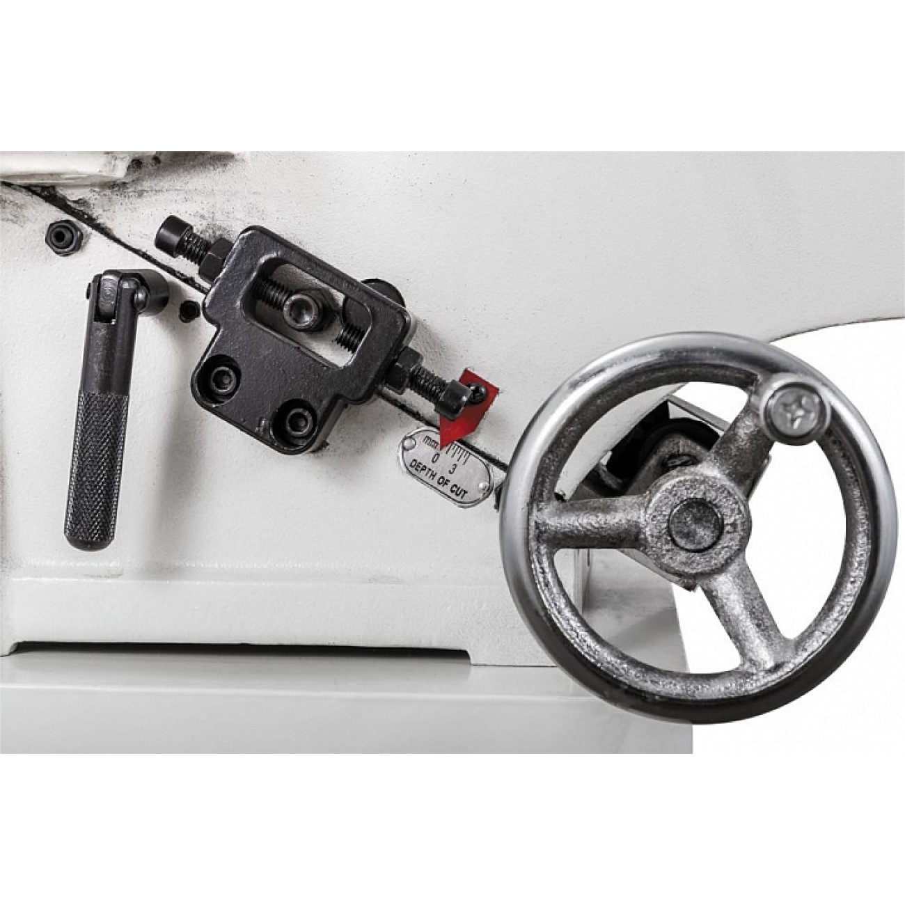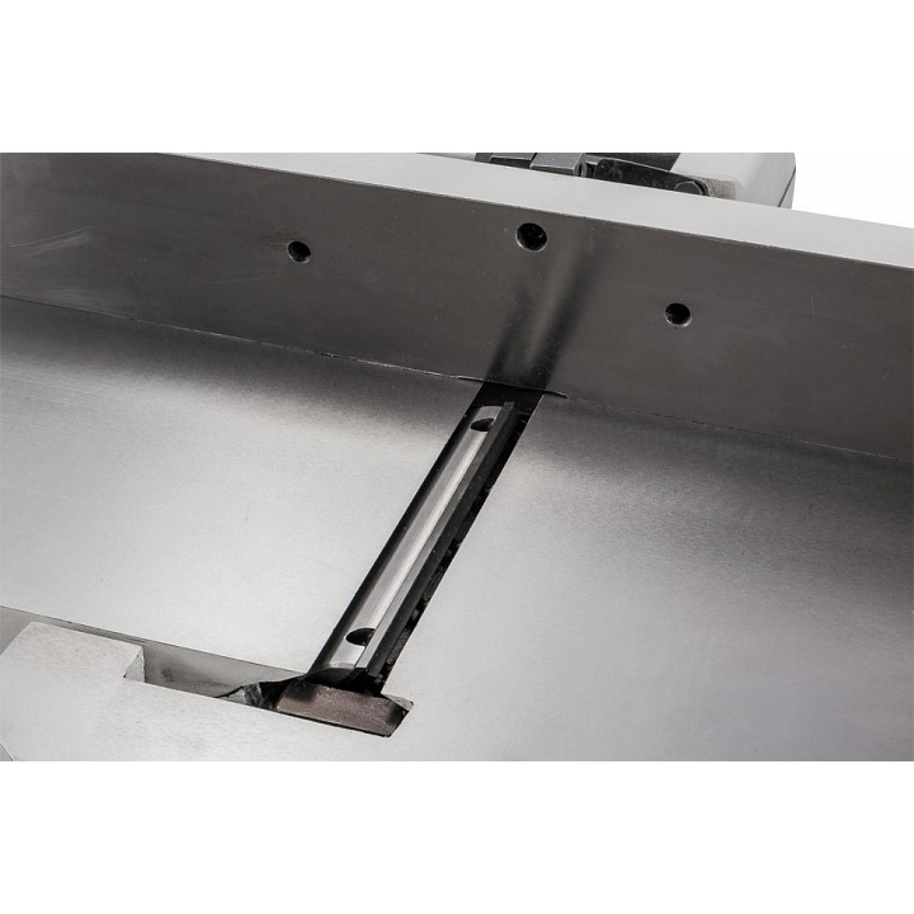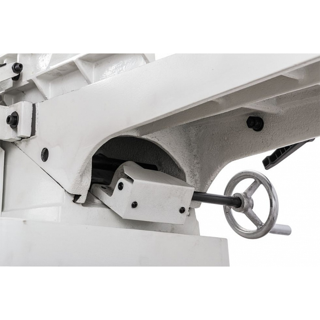 Обидва столи регулюються по висоті за допомогою гвинтових механізмів, що приводяться в дію ручками-маховиками. Переміщенням столу, що подає (переднього), встановлюють глибину стругання, для чого є відповідна розмітка; приймаючий (задній) регулюють тільки під час обслуговування верстата при операціях налагодження. Упор заготовки чавунний, з механізмом нахилу (він можливий обидві сторони). Фіксація обраного положення проводиться різьбовим затискачем. Ножовий вал укомплектований трьома ножами, що допускають повторне заточування. Їх типорозмір та асортимент такий же, як і у професійних фуганків Jet з аналогічною шириною стругання.