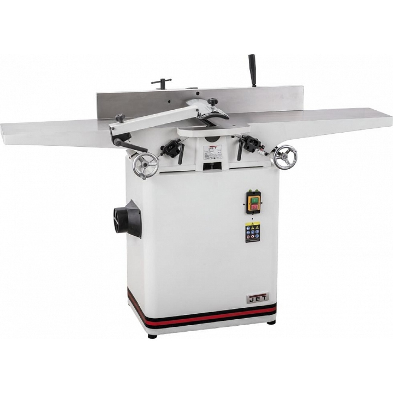 JJ-8-M - фугувальний верстат з шириною стругання 200 мм і довгими чавунними столами, призначений для аматорського застосування. По компонуванні та пристрої він повторює професійні моделі Jet, що робить його таким самим точним та зручним у роботі.