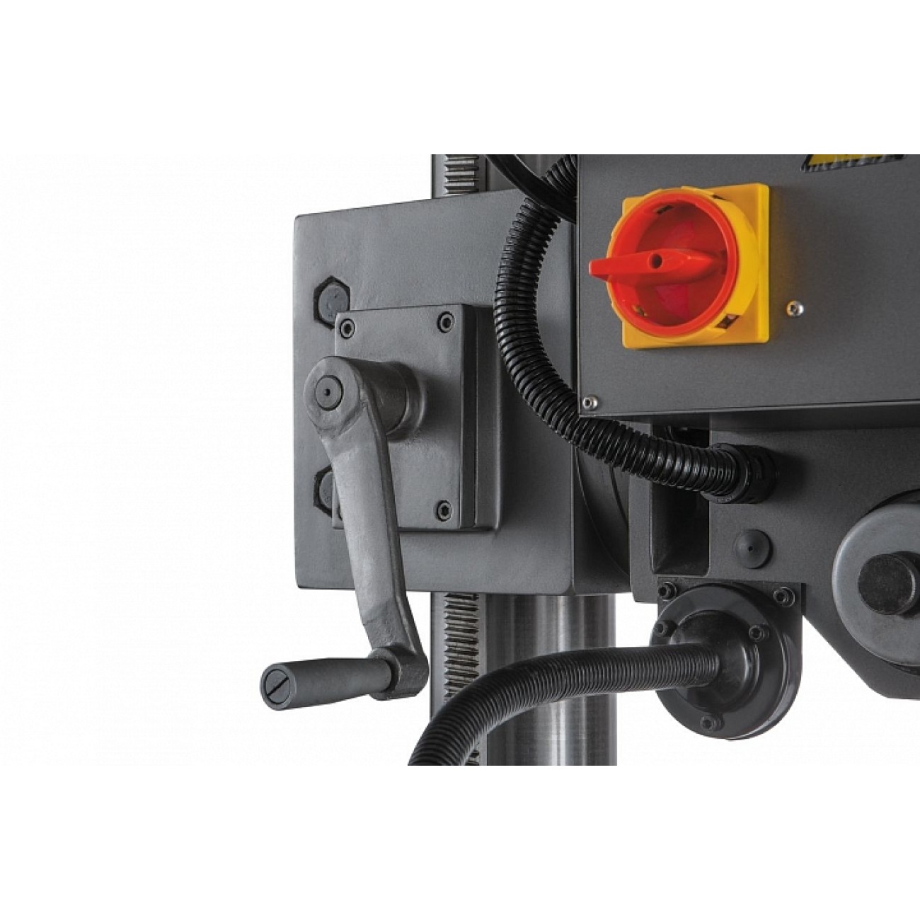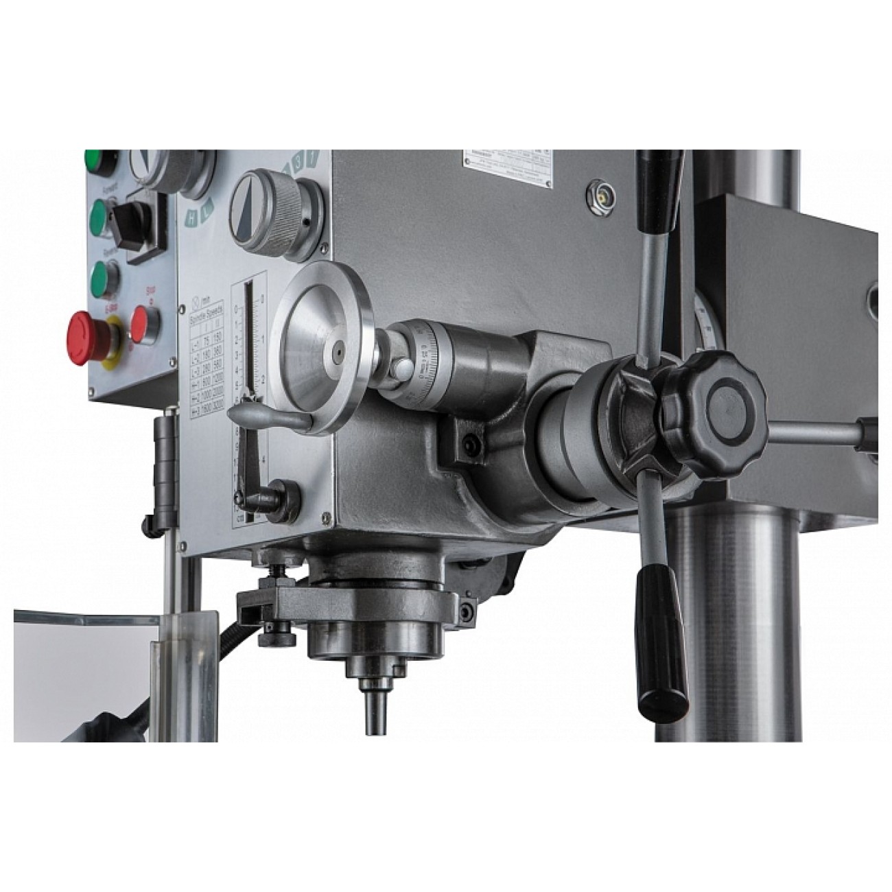 Станок имеет мощную литую станину из серого чугуна. Массивная стойка дополняет прочность и устойчивость всей конструкции. Особенностью модели JMD-40 является возможность поворота фрезерной головки вокруг колонны на 360 0 и поворота влево/право на 90 0, облегчая технологические манипуляции в процессе обработки заготовок. Станок оснащен функцией контроля над глубиной сверления, повышая качество обработки и производительность.