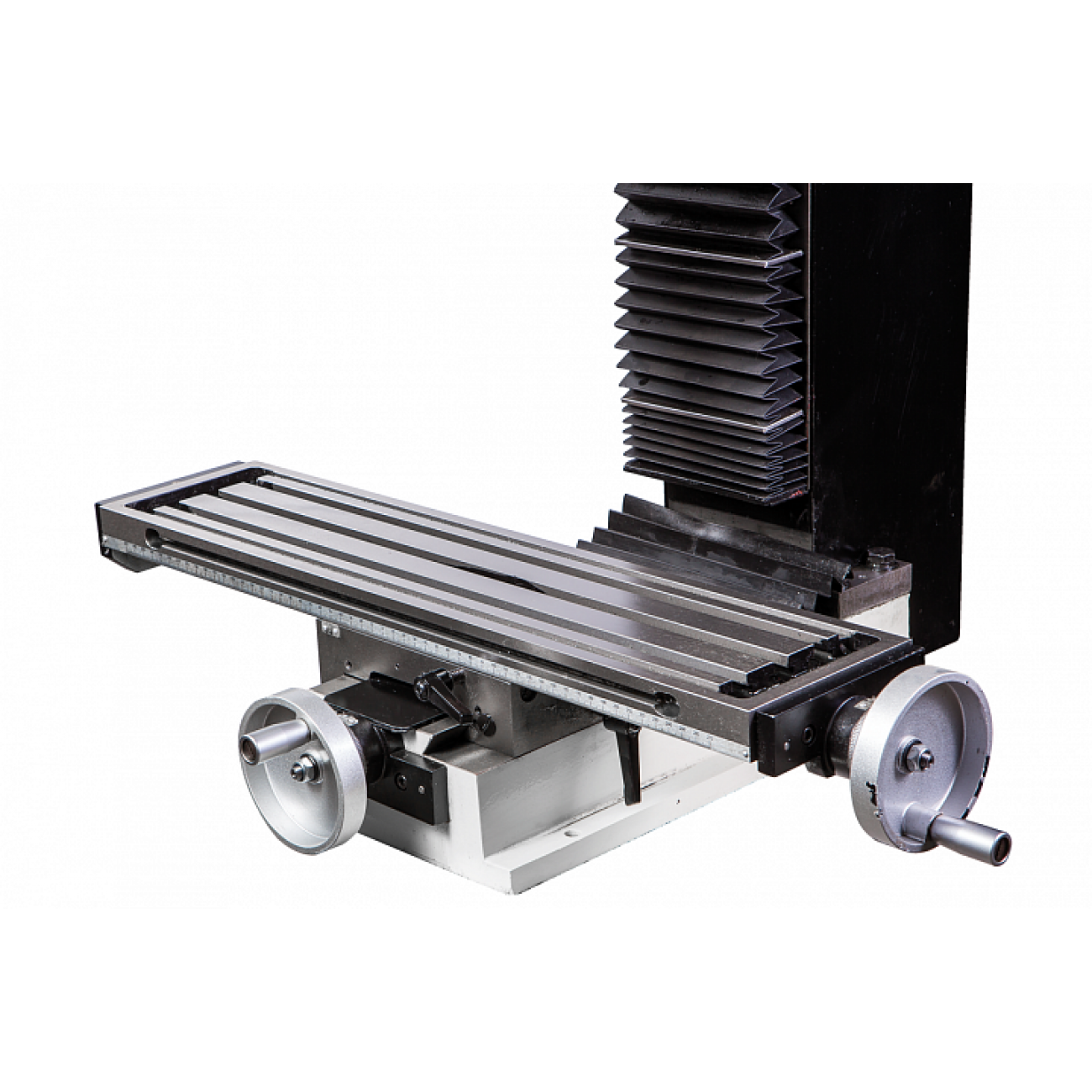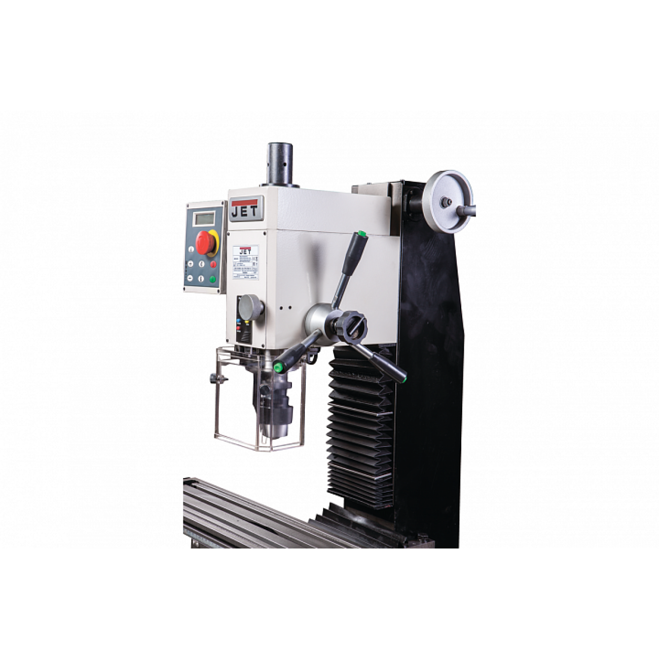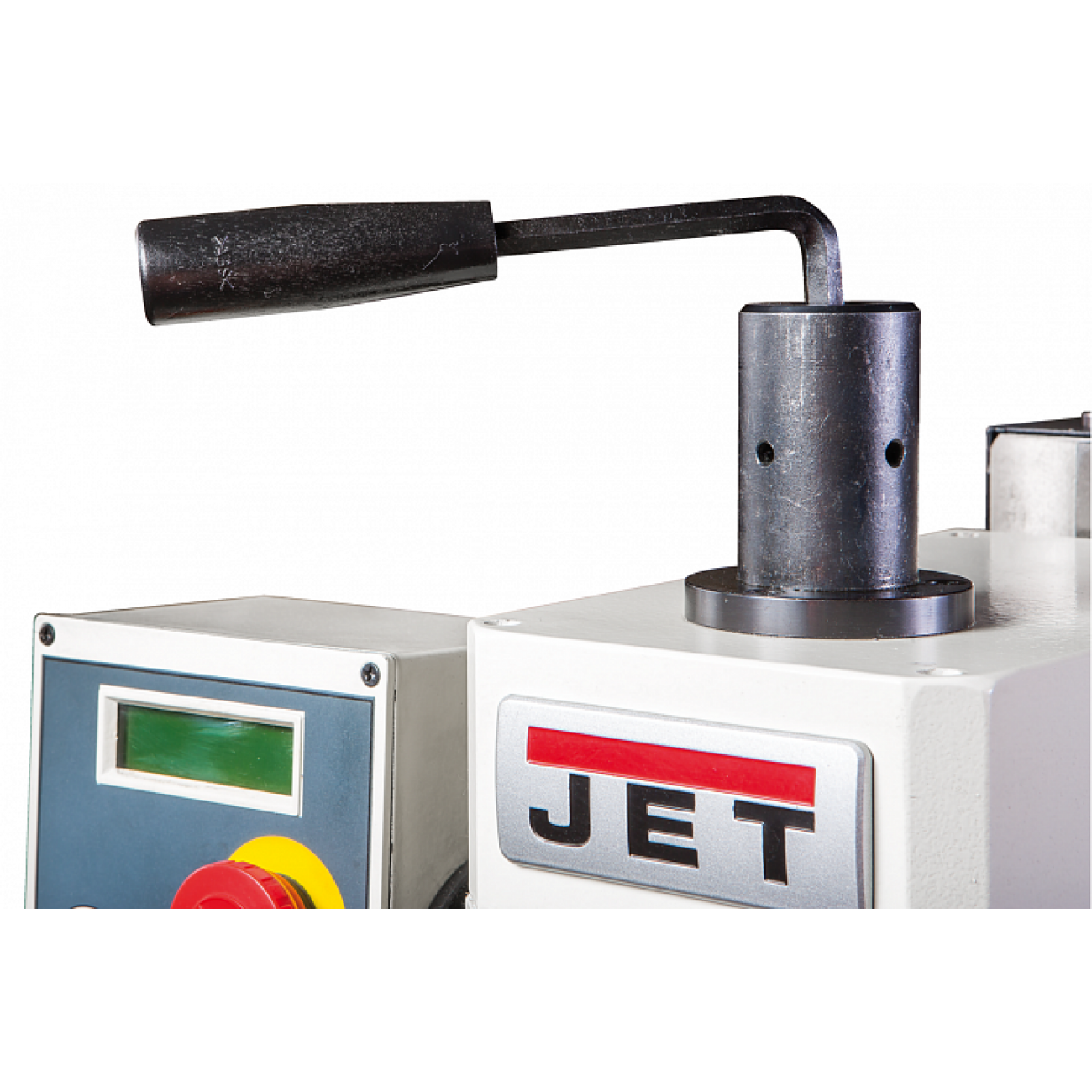 Максимальний діаметр свердління, з яким впорається JET JMD-X2S – 20 мм (М12), максимальний діаметр торцевої фрези – 50 мм, кінцевий – 16мм. Відстань шпиндель-стійка у даної моделі становить 190 мм, шпиндель-стіл 75-340 мм. Розміри столу відповідають класу обладнання: 595 х 140 мм, хід столу – 394х185 мм. Стіл має хрестоподібні напрямні типу "ластівчин хвіст", у міру зносу передбачена можливість підтягування клина. JMD-X2S практично повністю виконаний з чавуну, що дозволяє ефективно гасити вібрації за різних режимів роботи. Гідність JMD-X2S – можливість нарізування різьблення. Для цього на ручці управління вильотом пінолі передбачена кнопка, що запускає реверс.