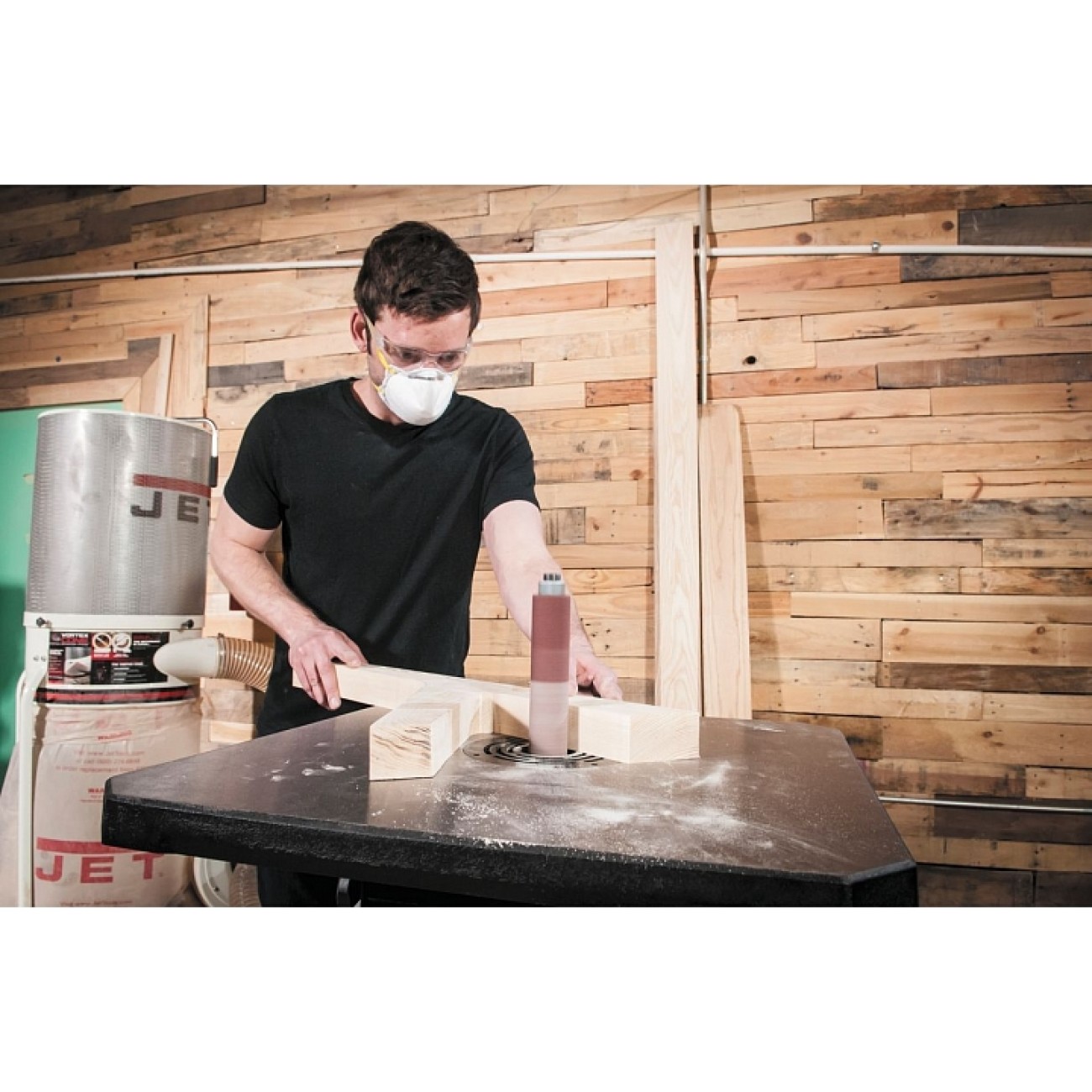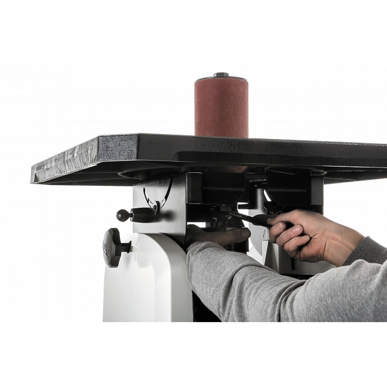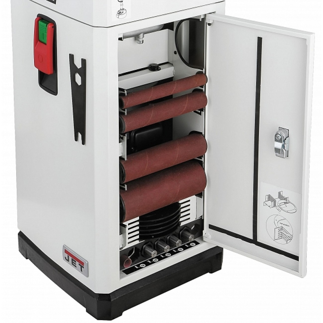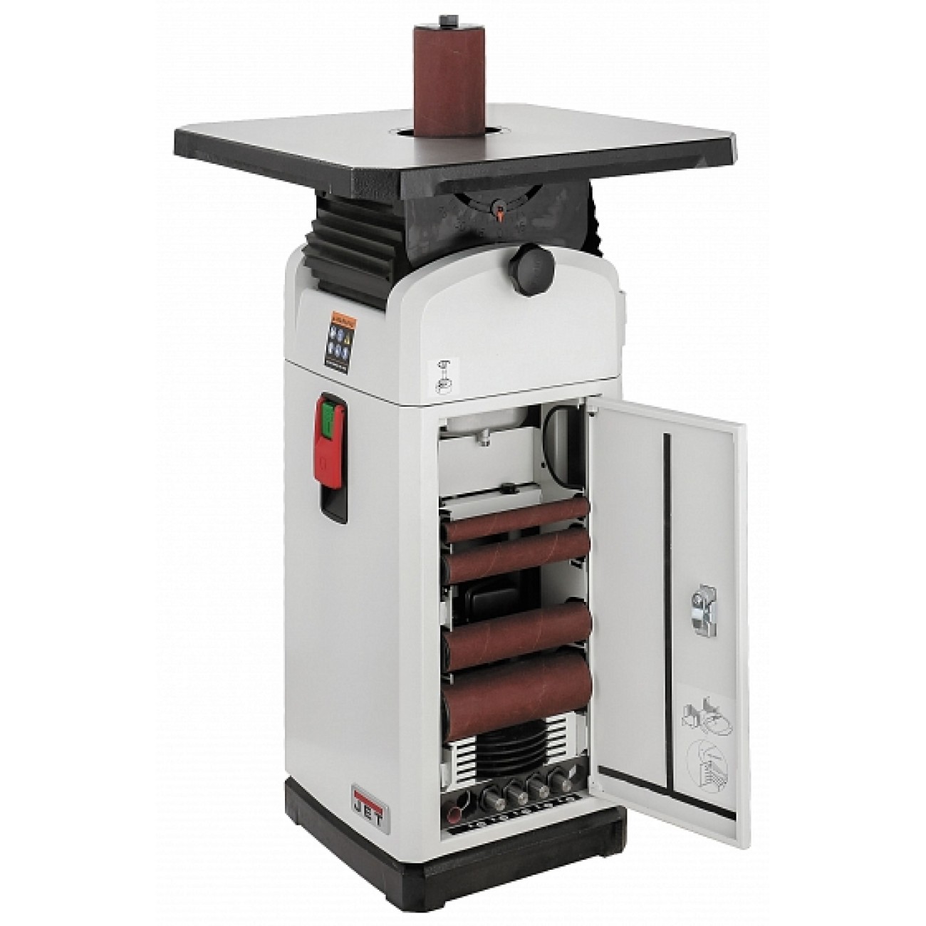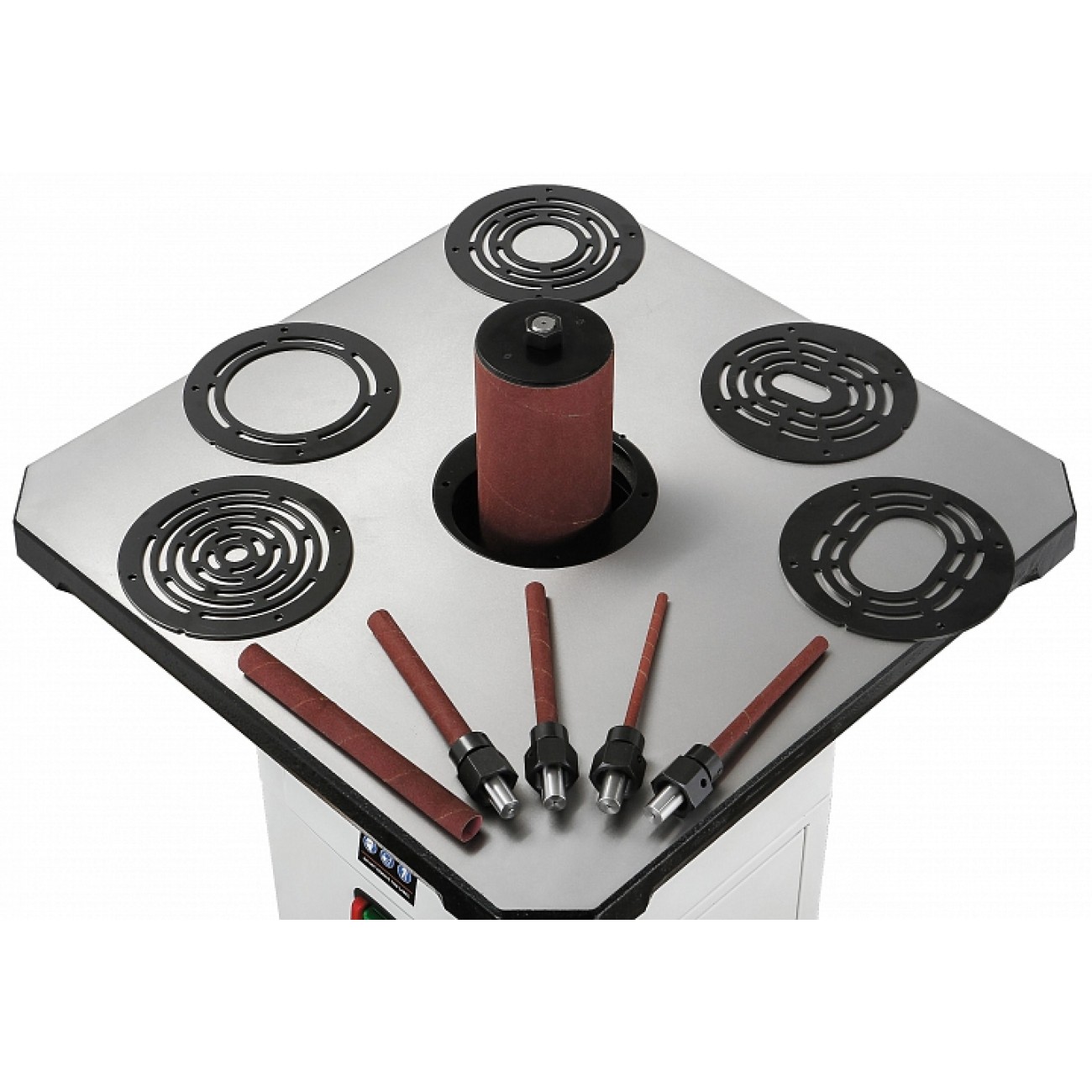 Стандартна комплектація включає 10 шліфувальних шпинделів з діаметром від 6 до 100 міліметрів, а також кільцеві вставки в робочий стіл з круглим і овальним отвором (для роботи в похилому положенні столу). Витратний матеріал – абразивні гільзи – пропонуються зі складу Jet у широкому асортименті.