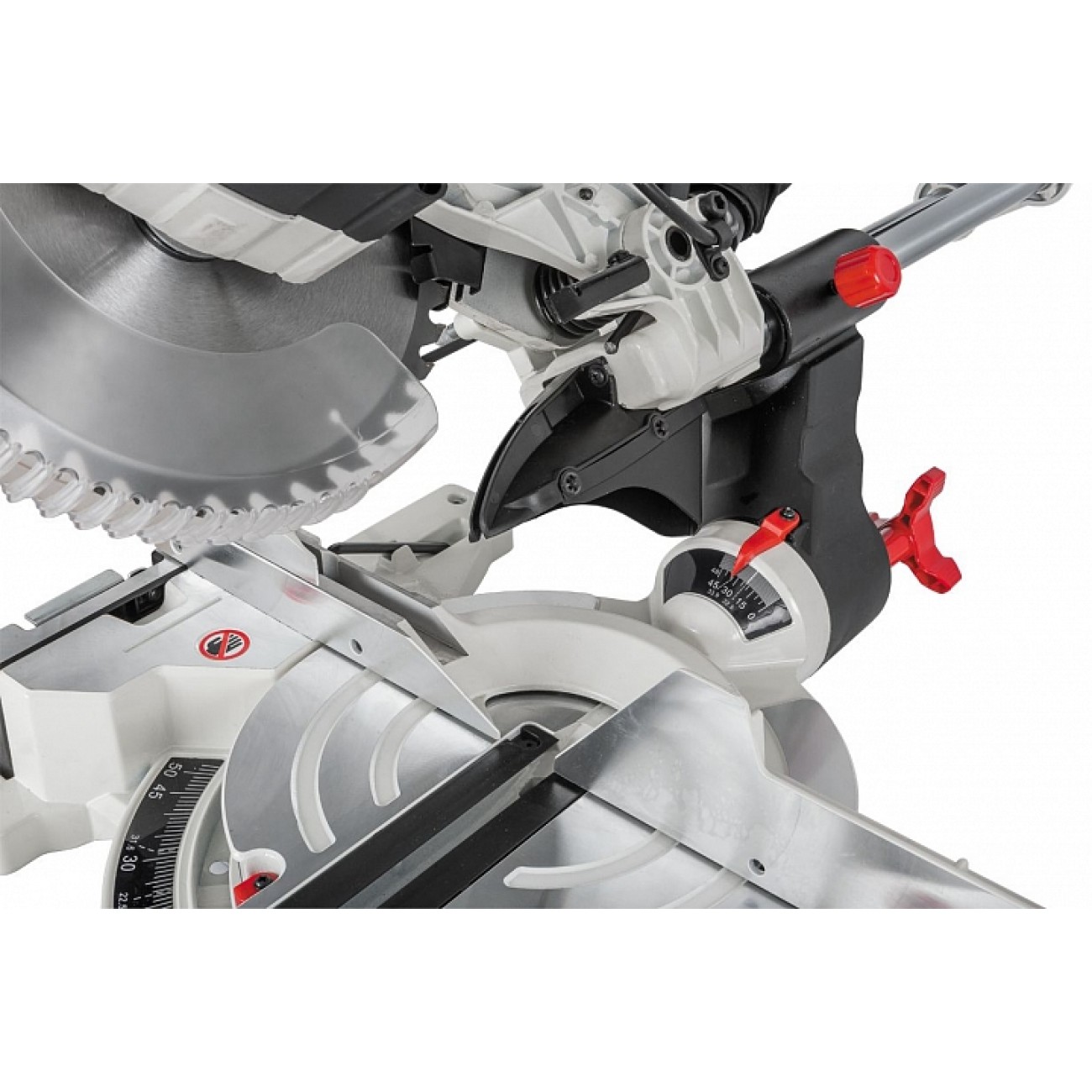 логічний фіксатор є і для шпинделя, що дозволяє змінювати диск з використанням одного єдиного ключа (для його зберігання є кронштейн на корпусі). Пила обладнана світлодіодним підсвічуванням області різу, яку можна увімкнути або вимкнути спеціальною кнопкою.