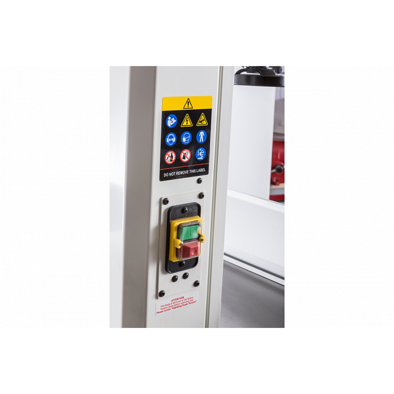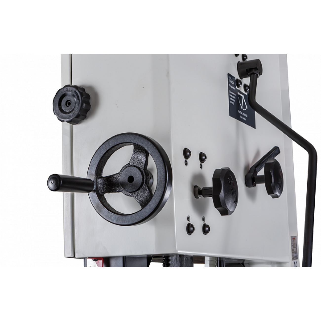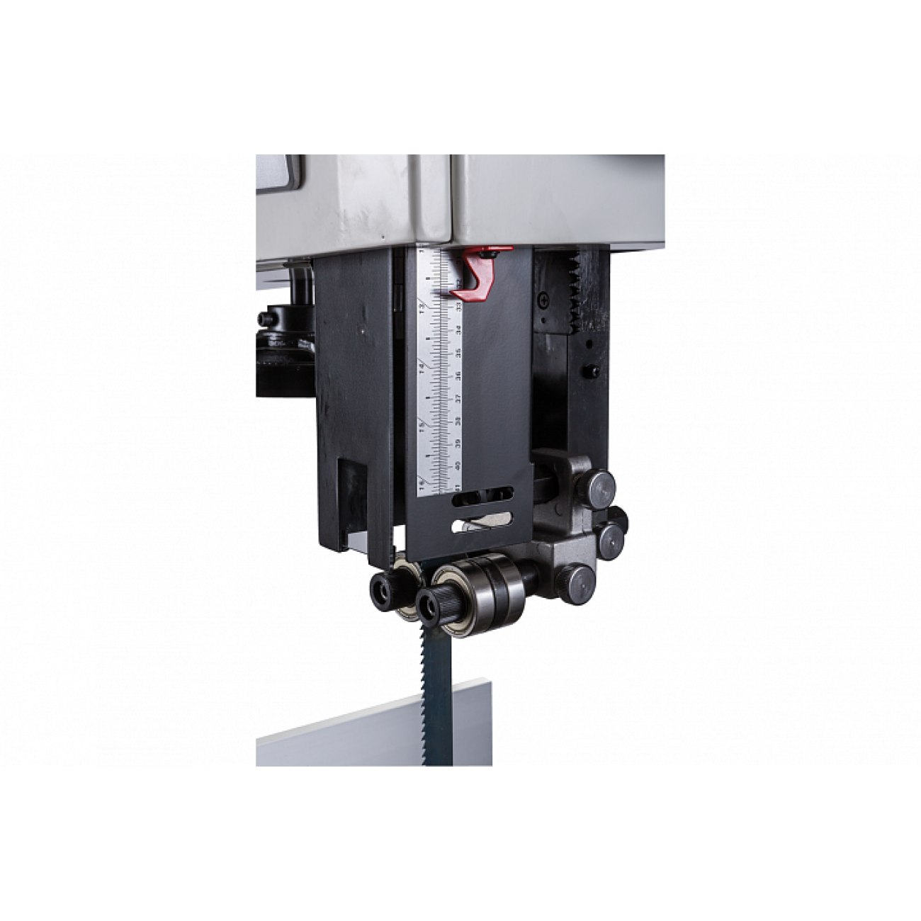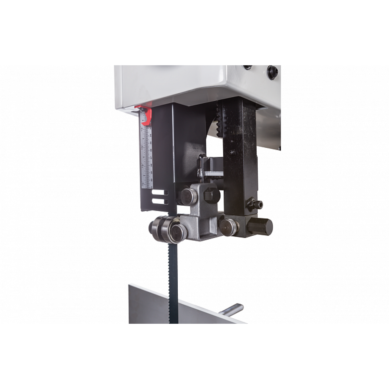 Jet JWBS-18 – нова стрічкова пилка для професійного застосування. Її основна перевага на тлі аналогів минулих поколінь – збільшена висота розпилювання. Цей параметр дуже важливий для тих, кому потрібен універсальний верстат, здатний взяти на себе ділильні функції. До подібних робіт пристосований і паралельний упор: напрямний профіль можна встановити вертикально на бічну грань так, щоб надійно фіксувати плоскі заготовки при розпуску на тонкі пластини. Загалом конструкція бічного упору дуже добре опрацьована і відповідає найсуворішим вимогам: профіль жорсткий і міцний, закріплений на масивному чавунному кронштейні, який переміщається циліндричною направляючою. Передбачена груба (вручну) та точна (мікрометричним гвинтом) установка.