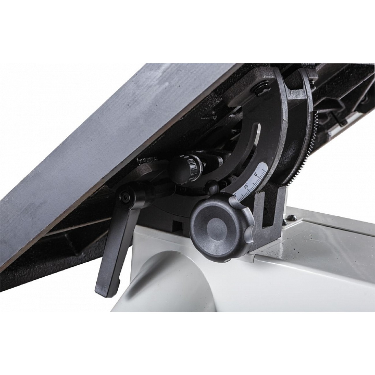 - Регулювання нахилу пильного столу обертанням рукоятки