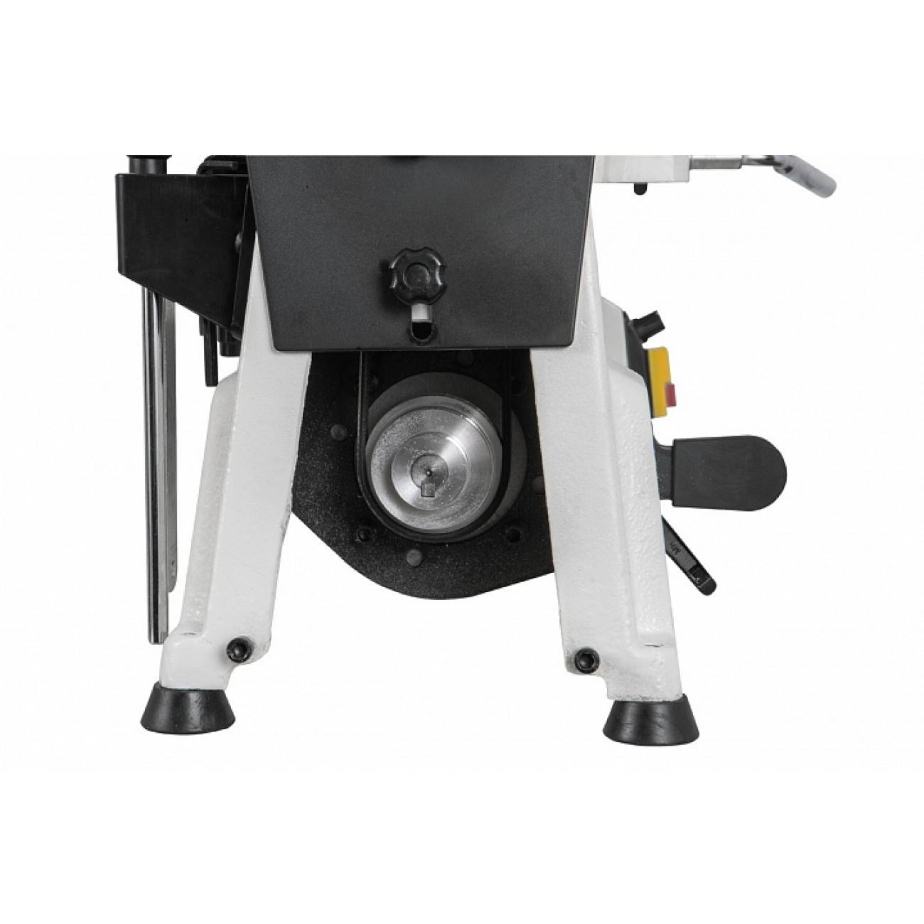 Верстат комплектується синхронним (щітковим) двигуном з електронним блоком плавного безступінчастого регулювання частоти обертання шпинделя та цифровою індикацією. Крім цього, передбачено три пари шківів і відповідно діапазонів частоти обертання. Привідний ремінь полікліновий, механізм його натягу на шківах важільний, без швидкої фіксації.