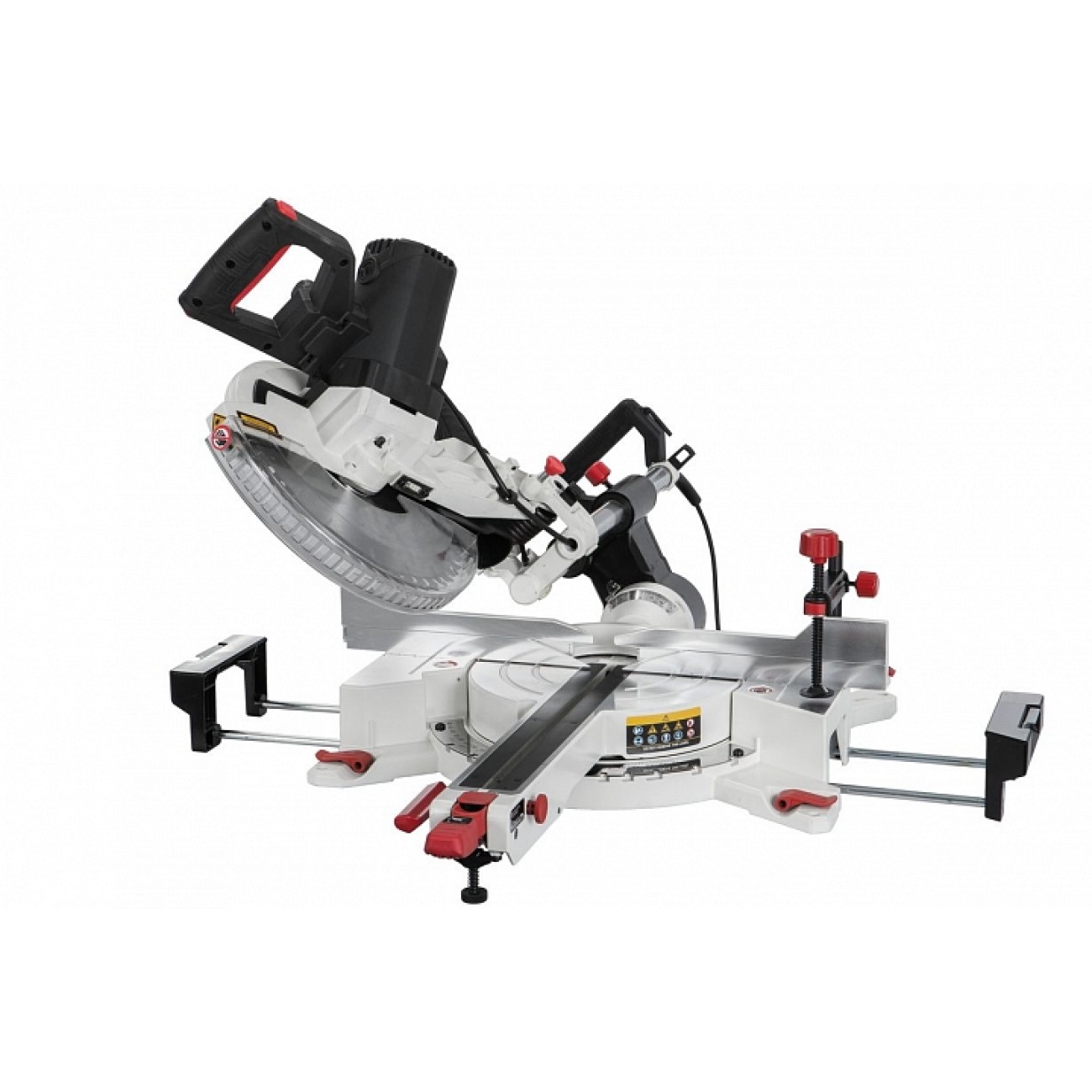 JWMS-12X - торцювально-усова пила з розширеними можливостями налаштування та регулювання, оснащена великим (305 мм) диском. Найважливіша перевага цієї моделі - "симетричний" механізм нахилу, що дозволяє робити скоси на кут до 45 ° і в праву, і в ліву сторону. При роботі з деталями, які не можна перевертати, а це все плінтуси та більшість інших декоративних накладних елементів, цю перевагу переоцінити важко. Але це ще не всі унікальні переваги верстата: механізм повороту столу має розширений діапазон: вліво до 52°, а вправо до 60°, що знову ж таки дуже важливо, оскільки дозволяє робити поширений 30-градусний гострий кут із опорою заготовки на довгу сторону, а не її торець.