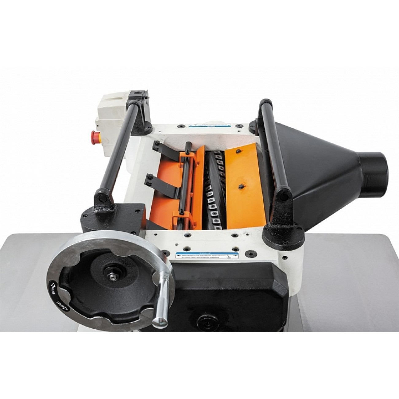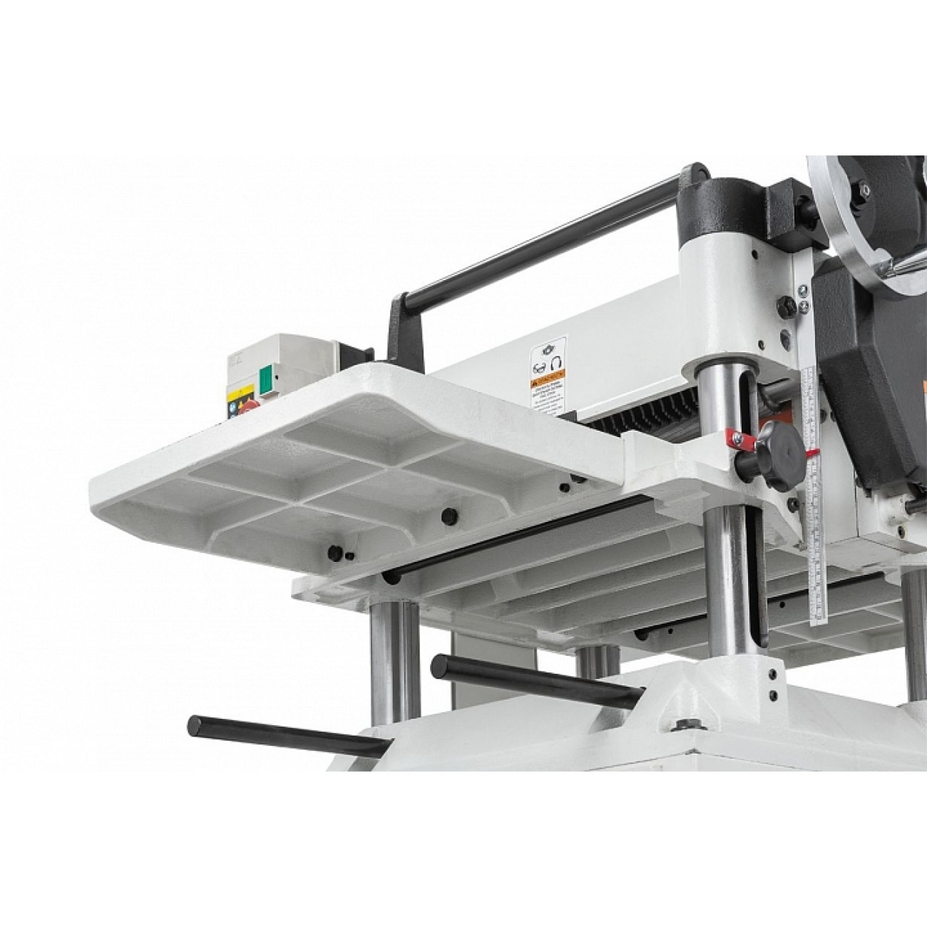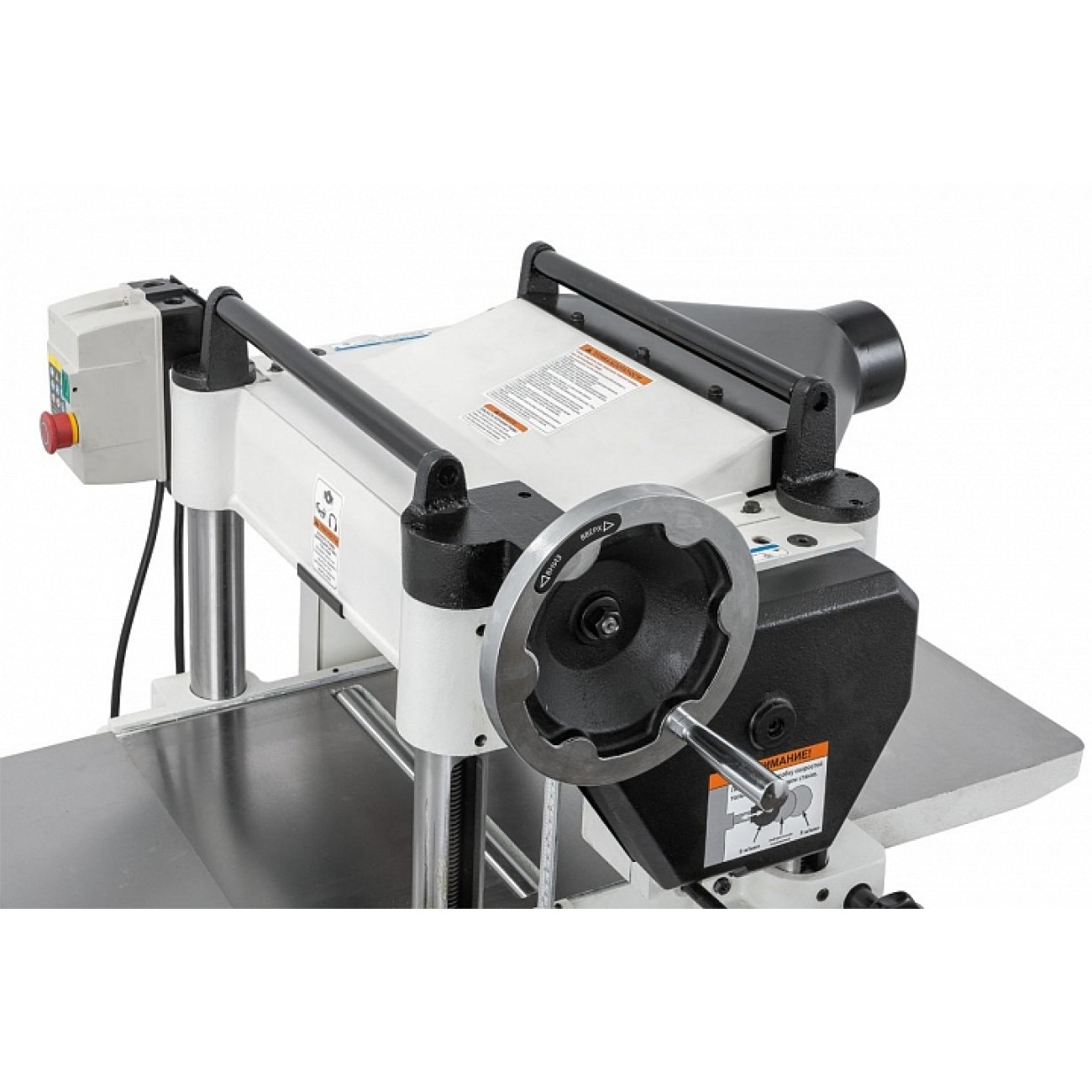 Зверху направляючих колон встановлено два металеві ролики для зворотної подачі заготовок. Робочий стіл верстата, його подовження, основа та стругальний вузол зроблені з чавуну. Регулювання просвіту відбувається при підйомі та опусканні столу, у нижньому положенні відстань до ножів перевищує 200 мм, що дозволяє пропускати великі бруси або дошки, поставлені на ребро.