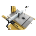 Верстат виконаний у варіанті підлоги: нижня тумба є його невід'ємною частиною і служить не тільки підставкою, але і відсіком для розміщення двигуна. Чавунний робочий стіл встановлений на поворотному сегменті і може нахилятися в обидві сторони: на 15 градусів усередину та на 45 назовні. На поверхні фрезерований Т-подібний паз, що служить направляючою для кутового упору (входить в комплект поставки). Паралельний упор із ексцентриковим фіксатором переміщається вздовж сталевого прямокутного профілю, закріпленого біля переднього краю столу. Для спрощення налаштування передбачена міліметрова шкала. Як допоміжний пристрій на упор монтується циліндричний стрижень, призначений для пиляння з однаковим відступом від краю заготовки непрямої форми.