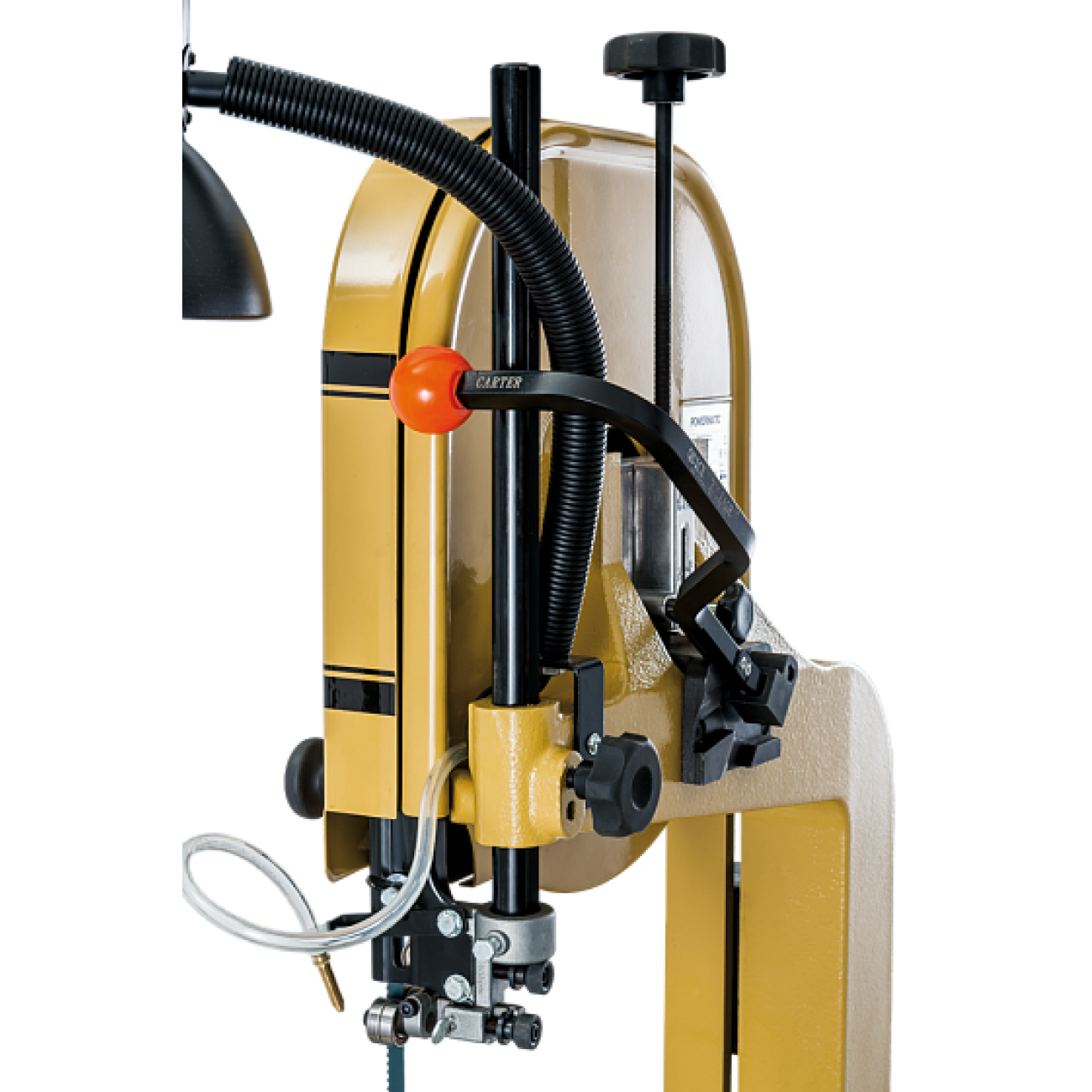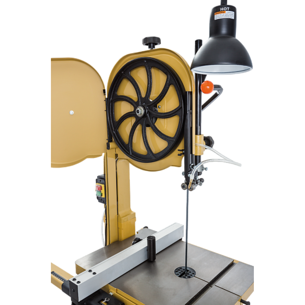 Як і інші верстати Powermatic, цей адресований найвибагливішим користувачам, які бажають мати найкраще у своєму класі обладнання, укомплектоване максимально повно. Так, окрім усіх необхідних та обов'язкових систем PWBS-14CS має лампу (плафон на кронштейні) для освітлення робочої області та повітряний насос із гнучким патрубком для здування тирси з лінії різу.