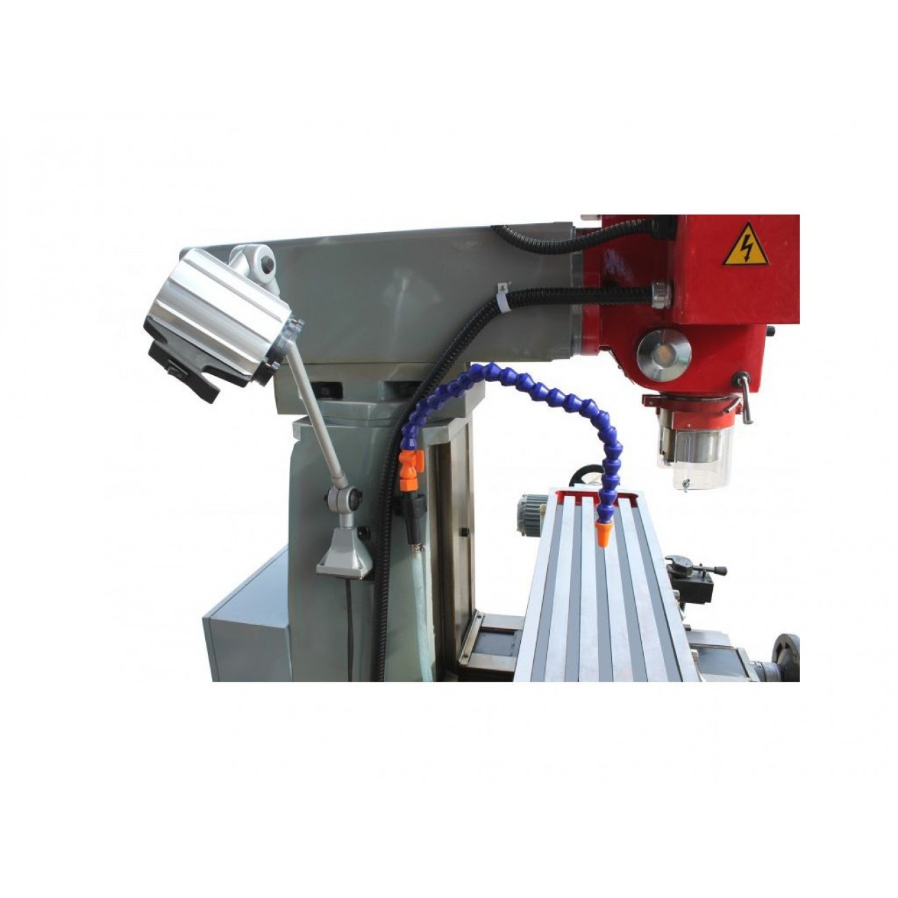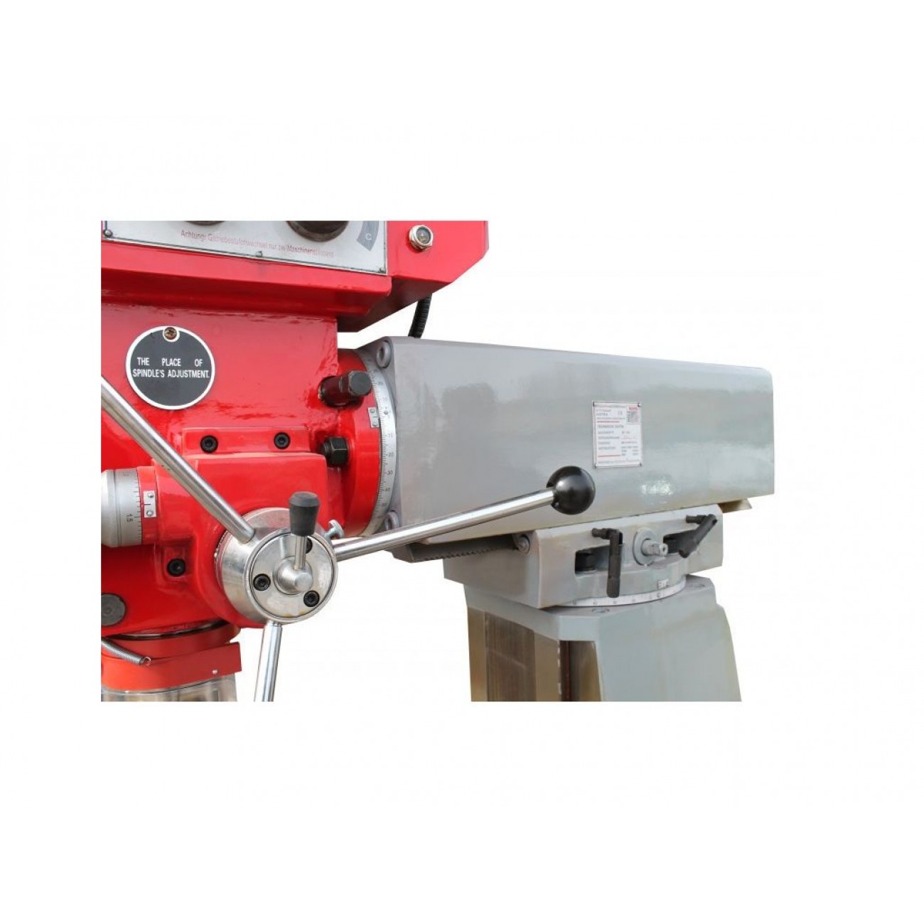 Універсальний вертикальний фрезерний верстат призначений для фрезерування поверхонь, нарізання різьби (правим і лівим ходом), свердління отворів в металі глибиною до 125 мм і діаметром до 50 мм. Це важка лита виброустойчивая конструкція з поворотною фрезерною головою на 90 градусів в обидві сторони. Лінійки можна регулювати по всіх осях.