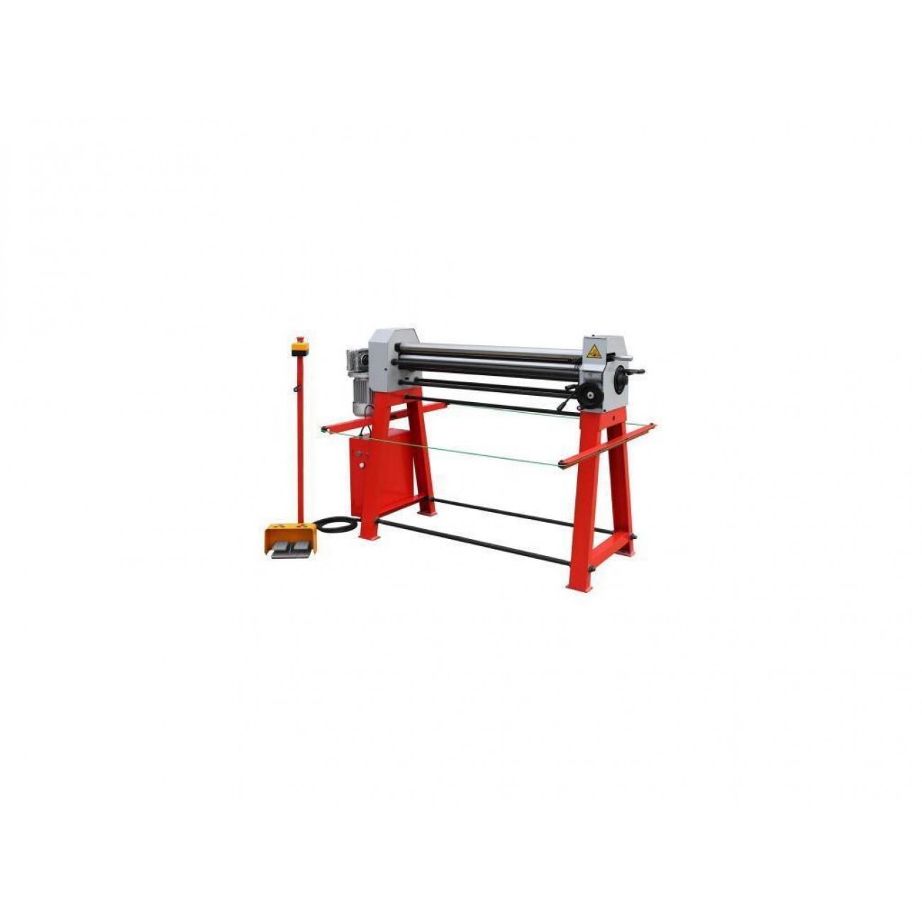 - Асиметрична 3-валкова система з висувним верхнім валком і ексцентриковим замком