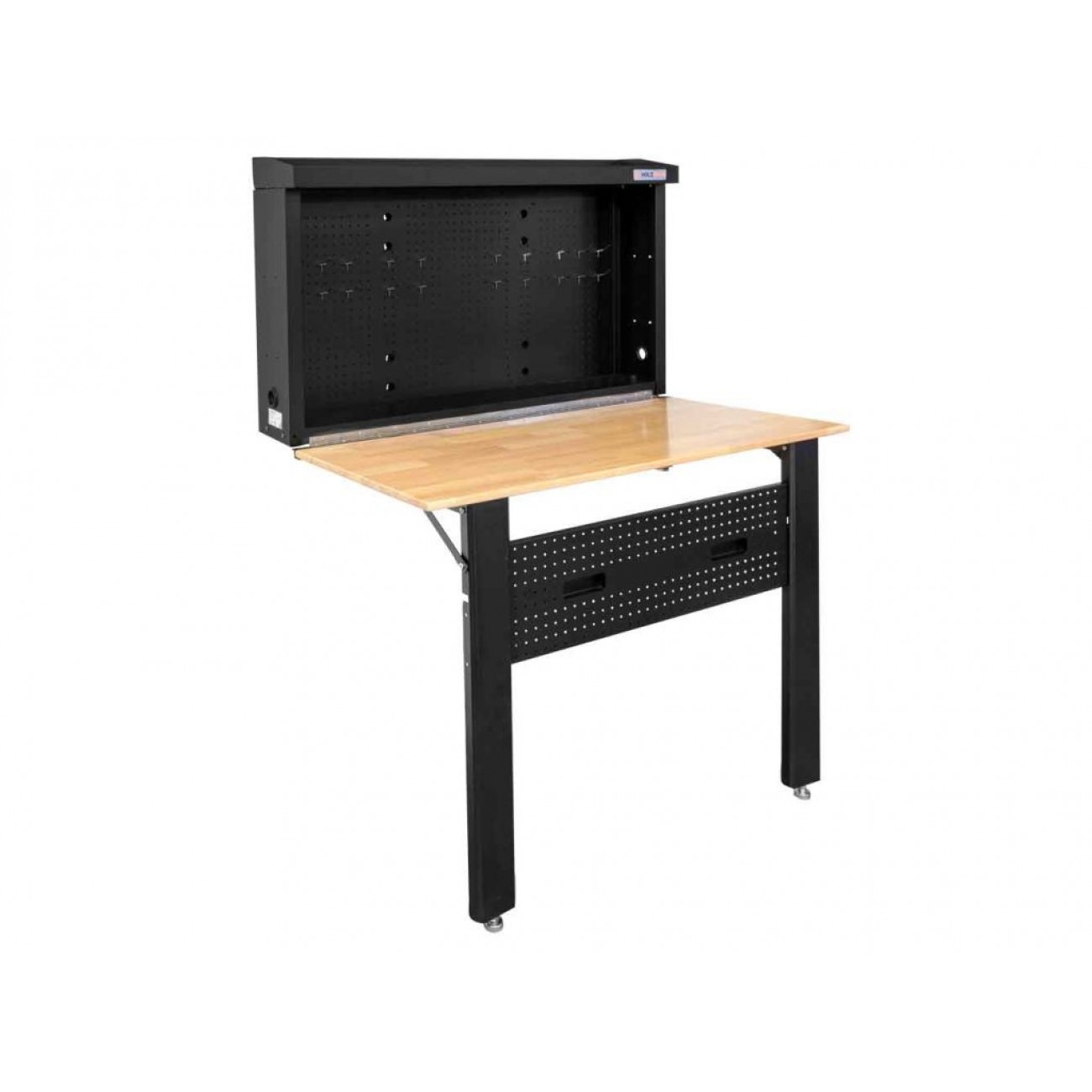 Стільниця виготовлена з каучукового дерева, має розмір 1200х600х20 мм і витримує навантаження до 135 кг. Перфорована стінка, яка монтується на стіну, має отвори Ø 5,5 мм і доповнена 20 гачками. Максимальне навантаження на перфоровану стінку - 5 кг. Верстак має хорошу стійкість на різних поверхнях і не схильний до деформацій, що забезпечує зручність його використання і довготривалу службу. Цей верстак для майстерні купити можна на KMA.UA з доставкою по Україні.