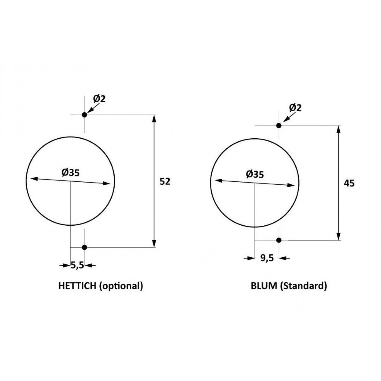 - Сумісність з двома типами фурнітури - Blum та Hettich