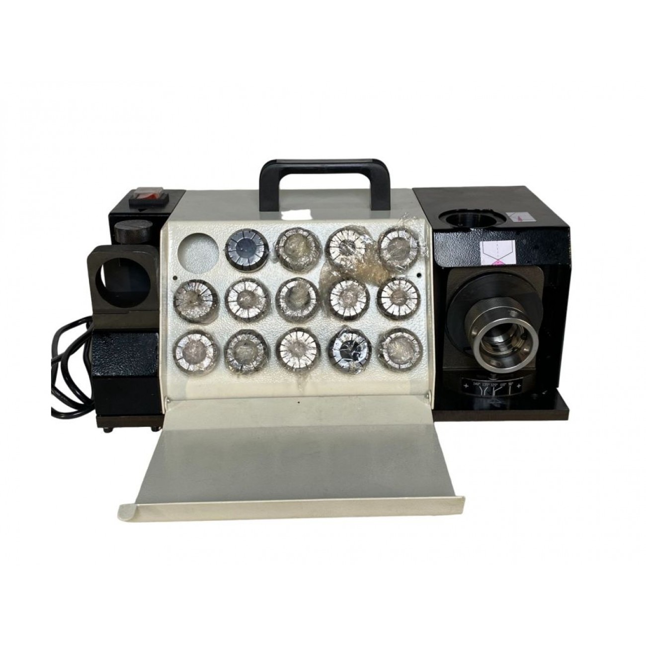 Поставляється з 14 цангами в стандартній комплектації, що дає змогу заточувати свердла діаметром від 13 до 26 мм. Завдяки затиску свердла в цанговому патроні можна виконувати заточування ріжучої кромки і задньої поверхні інструменту, а також зменшити товщину перемички. Компактний розмір дозволяє розмістити цей верстат на будь-якій твердій поверхні і ефективно використовувати у приміщеннях з обмеженим робочим простором. На сайті KMA.UA ви можете купити заточний верстат для свердла MAST Metalltechnik M-DG26 230V з доставкою по Україні.