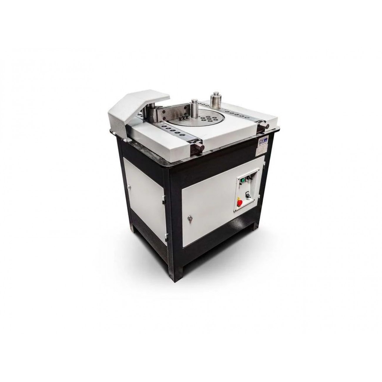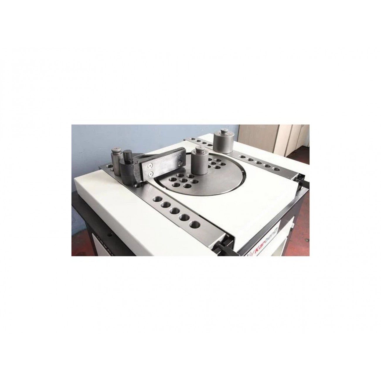 Згинач арматури, прутків, дроту та плоских прутків. Ідеально підходить для згинання як арматурних стремен, так і різних арматурних ферм з гладкого та ребристого дроту. Завдяки використанню відповідних інструментів можна гнути елементи для художньої ковальства, які використовуються, наприклад, у виробництві воріт, огорож, балюстрад і т.д. Зварна сталева рама та робочий стіл забезпечують стабільну роботу навіть у складних умовах. Машина має два режими роботи: автоматичний та ручний.