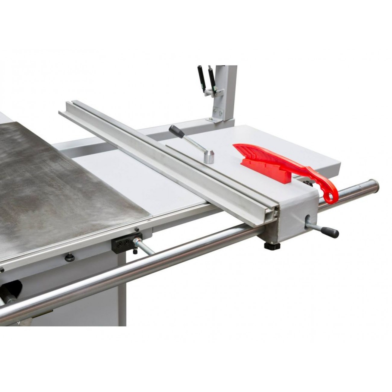 Телескопічна упорна лінійка дозволяє різати матеріал шириною до 1200 мм. На лінійці встановлюються два відкидних упору (прапорця), для зручності різання на основі лінійки і її телескопічним розширення.