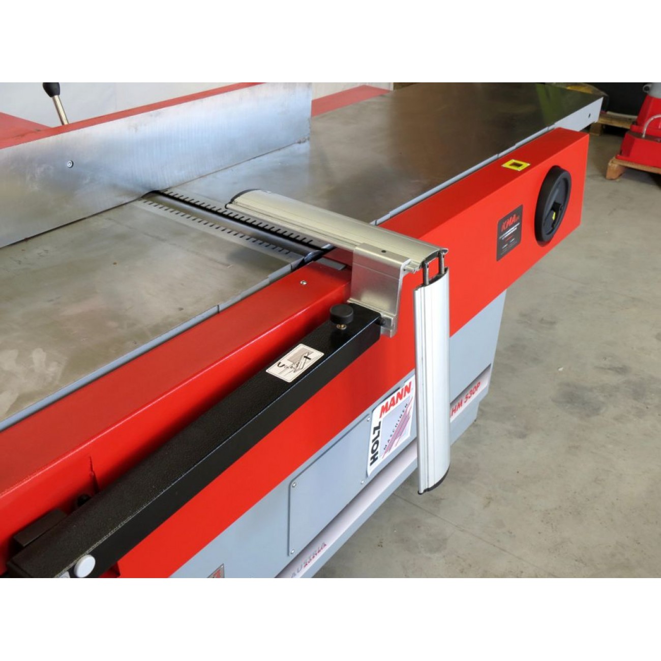 Чавунна напрямна лінійка легко переміщається по столу за допомогою коліс.