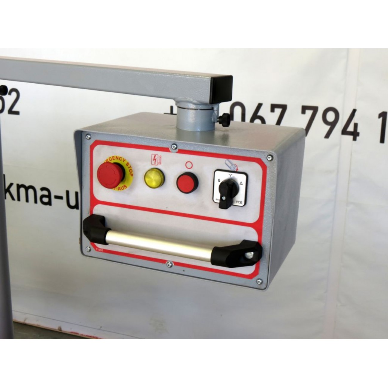 Винесений на рівні очей пульт управління з кнопками включення аварійної зупинки. Встановлений на поворотній консолі, що дозволяє обертати і встановлювати пульт в зручному для оператора місці.