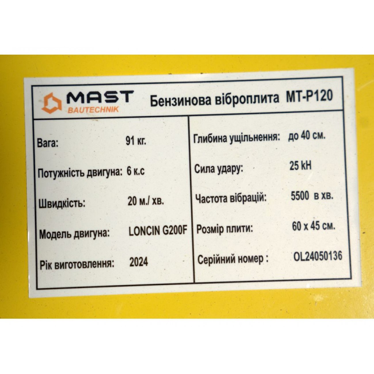 Основні характеристики Віброплита MAST Bautechnik MT-P120