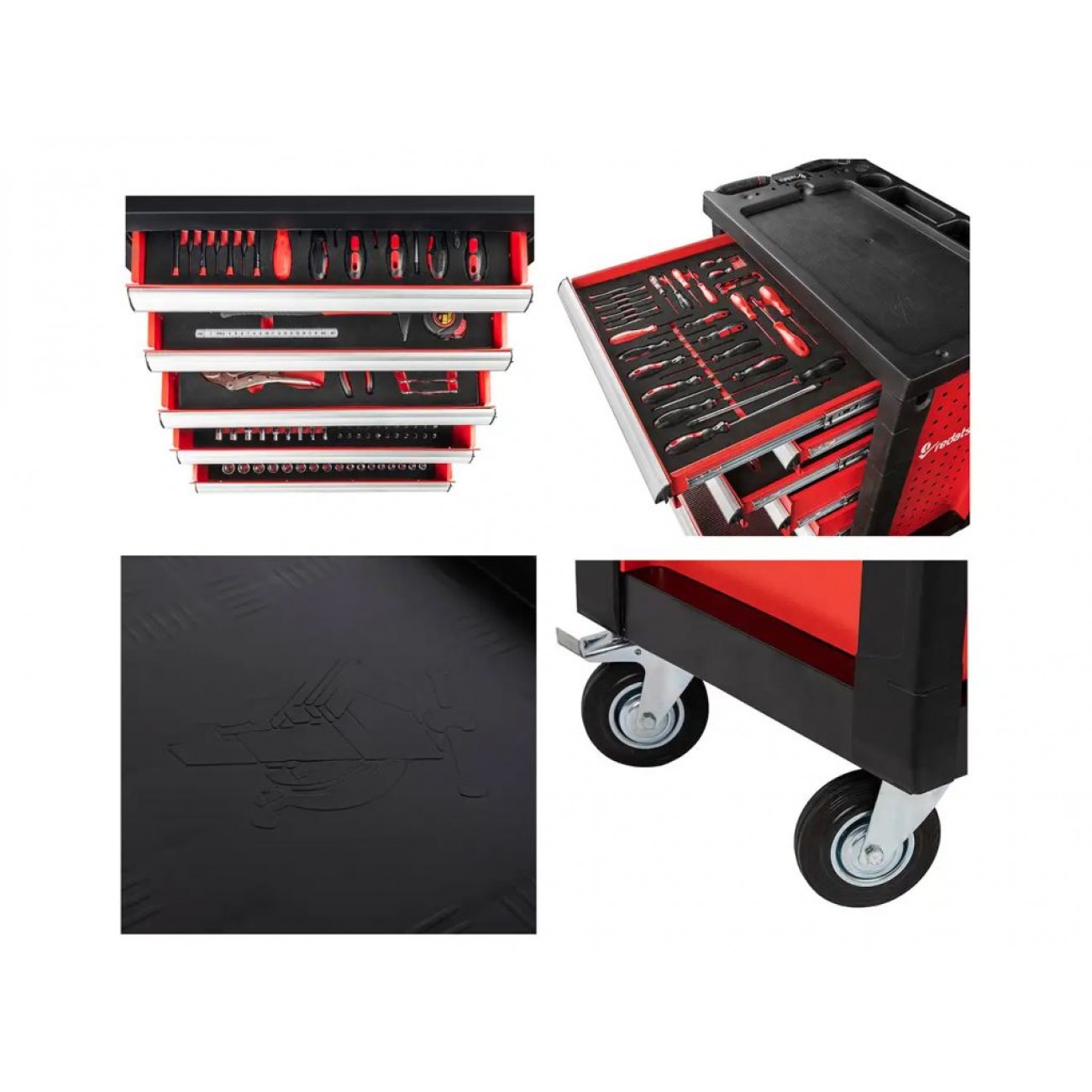 - 4 колеса (2 поворотні, 1 з гальмом)
