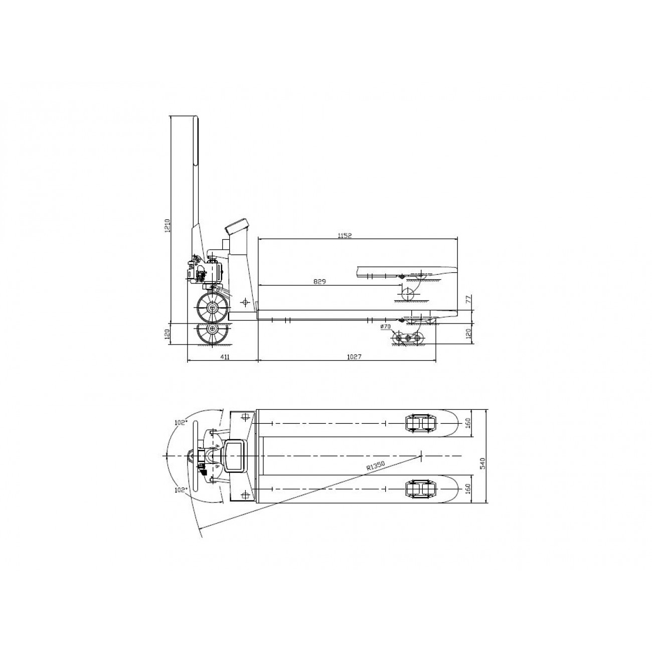 - Зручна у використанні завдяки ергономічній ручці з трьома функціями: підйом / рульове керування / опускання