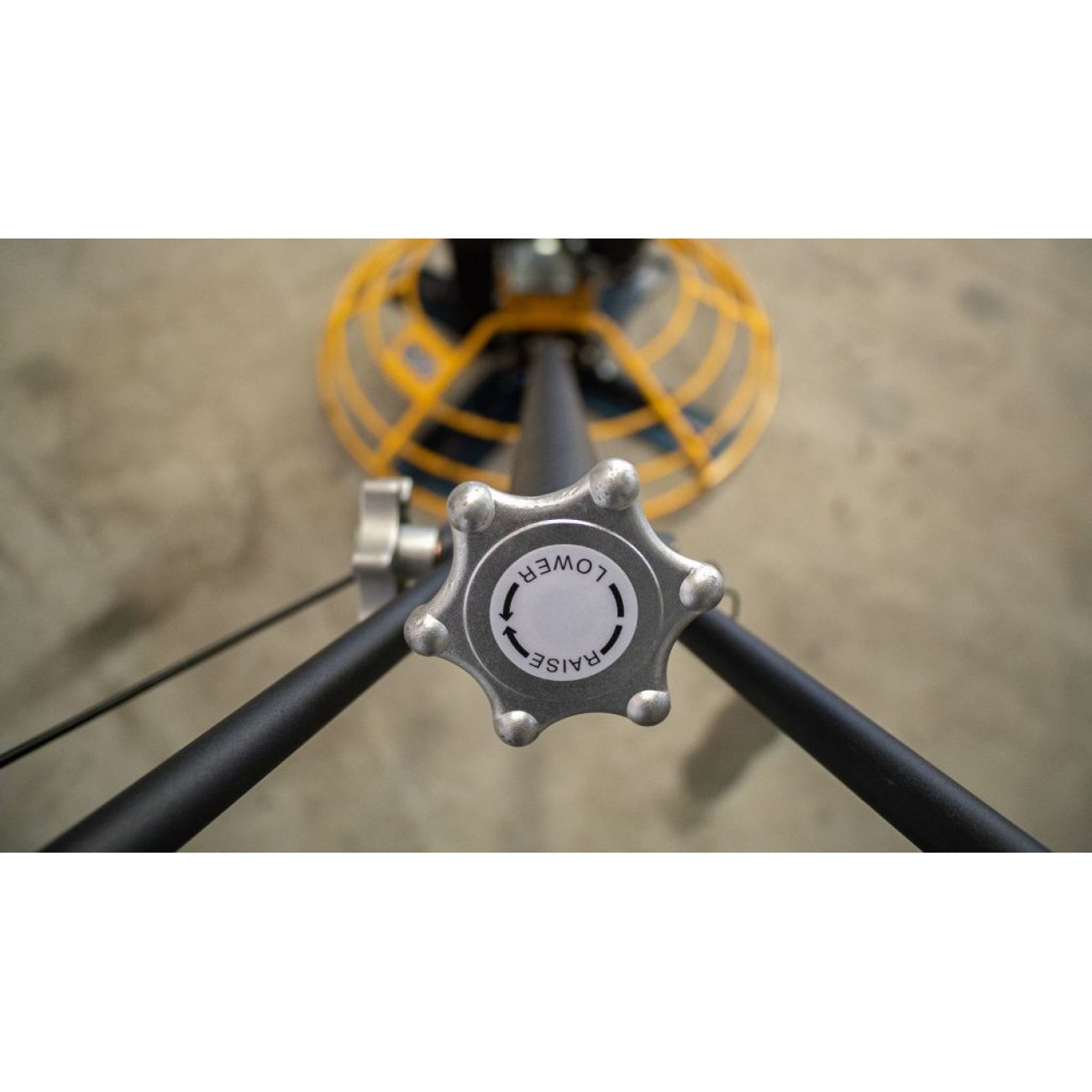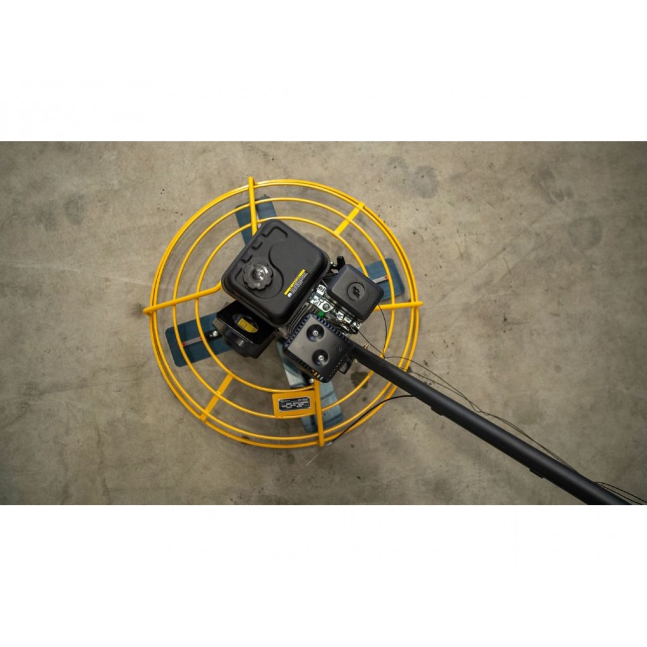 Корпус виготовлений з високоякісної сталі і характеризується високою міцністю і стійкістю до пошкоджень. Ергономічний дизайн і регульована по висоті ручка забезпечують зручність експлуатації. Для транспортування обладнання ручку можна скласти. Ця професійна бетонозатиральна машина комплектується також затиральним диском Ø 965 мм, що ще більше розширює її можливості.