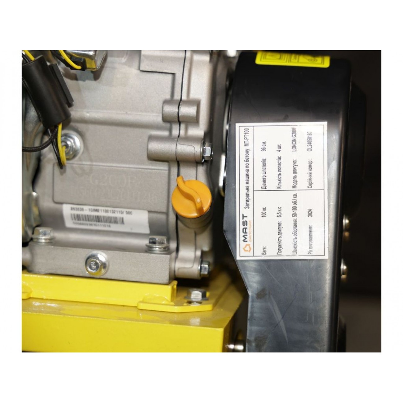 Затиральна машина по бетону MAST Bautechnik MT-PT100 призначена для обробки бетонних і цементних поверхонь з метою надання їм гладкості і міцності. Виконує грубе затирання за допомогою сталевого диска і чистове із застосуванням сталевих лопатей. Одноциліндровий, чотиритактний двигун LONCIN потужністю 4,4 кВт забезпечує надійну і продуктивну роботу. Діаметр затирочної області - 960 мм, що робить цю модель ідеальною для великих площ і дозволяє працювати швидко та ефективно. Завдяки невеликій вазі і компактному розміру машина зручна у використанні і легко транспортується. Нахил шпателів регулюється, що дає змогу якісно затирати поверхню впритул до стін.