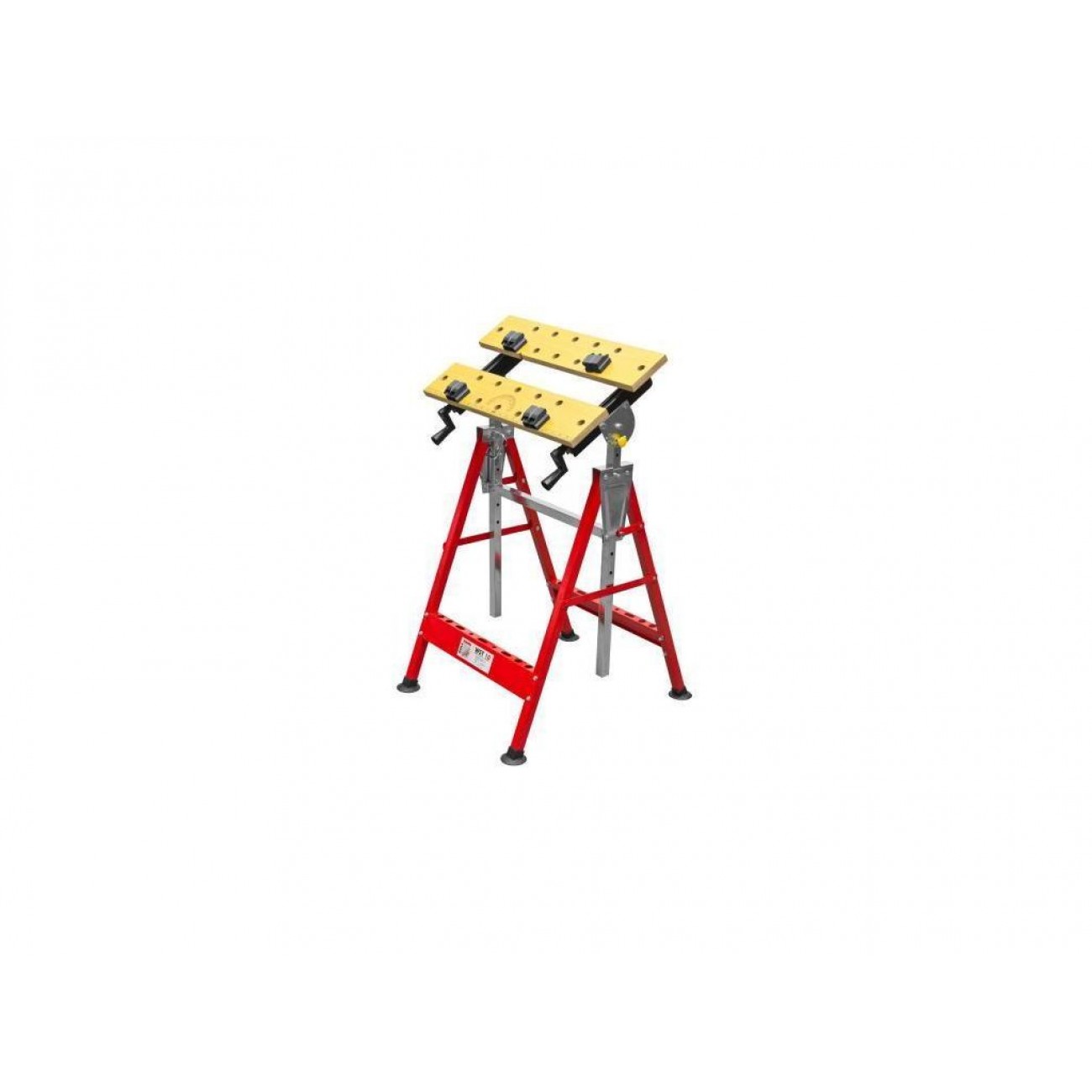 Розмір робочої поверхні - 600х460 мм, максимальне навантаження - 100 кг. Кут нахилу стільниці - 0-90°. Каркас виготовлений з міцного металу і не деформується при навантаженнях. Для покращення стійкості і стабільності є поперечні планки. Гумові накладки на ніжках запобігають ковзанню столу і захищають підлогу від пошкоджень. Такий робочий стіл з затиском універсальний для будь-яких робіт, тому підходить для майстерень різного профілю.