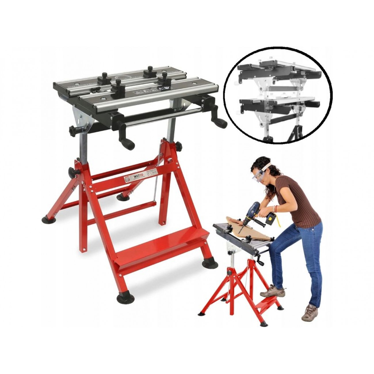 Затискний стіл Holzmann WST20 - це спеціалізоване обладнання для майстерень, яке дозволяє зручно виконувати широкий спектр робіт та економити робочий простір. Регулювання висоти ножною педаллю у межах 735-1025 мм і нахил стільниці під кутом 0-80° дозволяють швидко адаптувати стіл під конкретне завдання і власні потреби. 8 затискних кулачків з безступінчатим регулюванням забезпечують надійну фіксацію заготовок різної форми та розміру. Максимальне навантаження на стіл становить 100 кг.