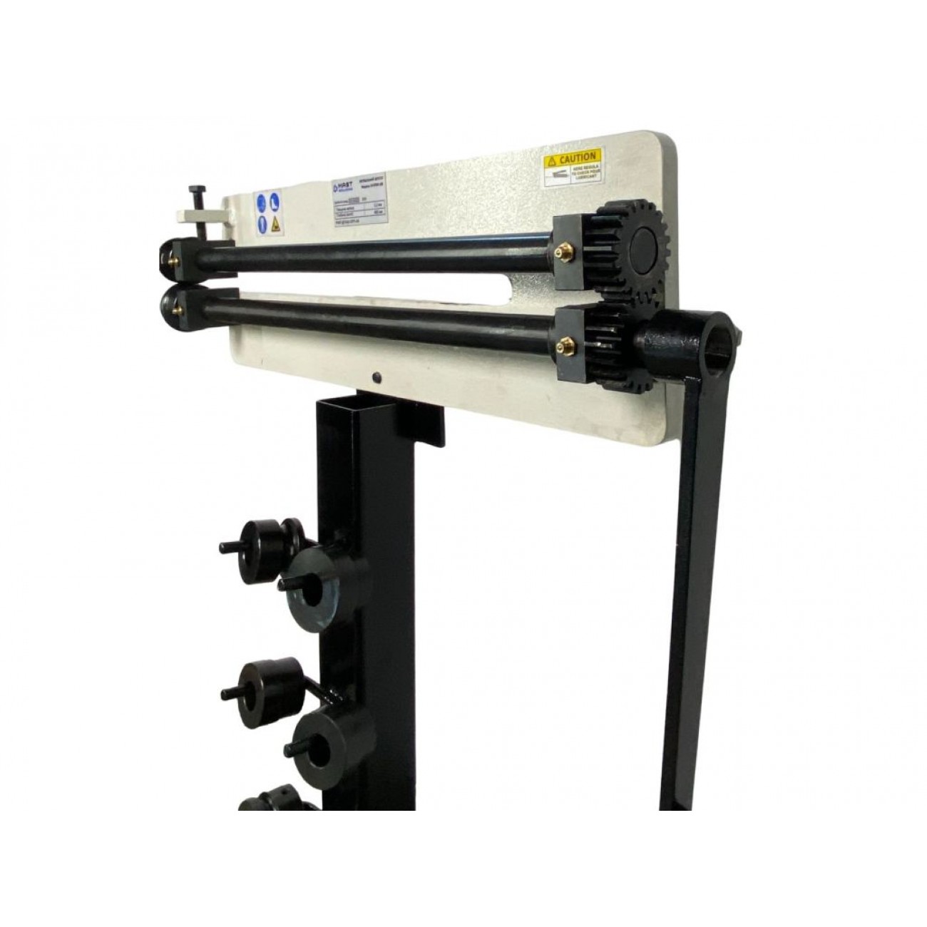 Зигувальний верстат MAST Metalltechnik M-EFRM18S - це ручне обладнання для обробки листового металу товщиною до 1,2 мм, що використовується при виготовленні елементів повітроводів, водостоків та для інших операцій, пов’язаних зі з’єднуванням елементів і відбортовуванням металу. Поставляється з 6 комплектами стандартних роликів для згинання, відбортовування і формування кромок. Робоча глибина - 490 мм, відстань між роликами - 50 мм.