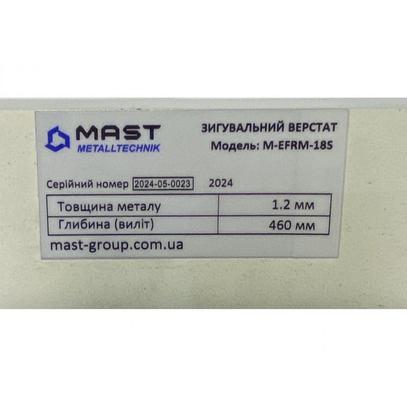 Основні характеристики Зигувальний верстат MAST Metalltechnik M-EFRM18S